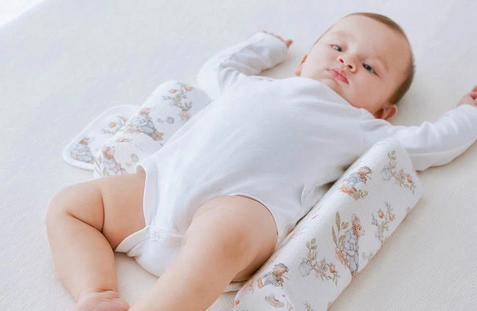 10Features: ✔️ 70° triangle support design – helps baby sleep on their back or side ✔️ Assists with improving head shape (flat head, tilted head, pointed head) ✔️ Prevents rolling / slipping for safer sleep ✔️ Soft, breathable fabric – upgraded material that doesn’t trap sweat ✔️ Adjustable width (up to 40cm) to grow with baby ✔️ Silent Velcro – won’t disturb baby’s sleep ✔️ Gentle support for both naps & nighttime sleep Material: • Fabric: 70% polyester fiber + 30% cotton • Base: 100% cotton • Filling: 100% polyurethane (except edges) Size: 40cm wide | Side wedge: 10cm x 7.5cm Care Instructions: • Hand wash at low temperature (below 30°C) • Hang to dry in shade • Do not bleach / do not tumble dry / do not dry clean / no ironing