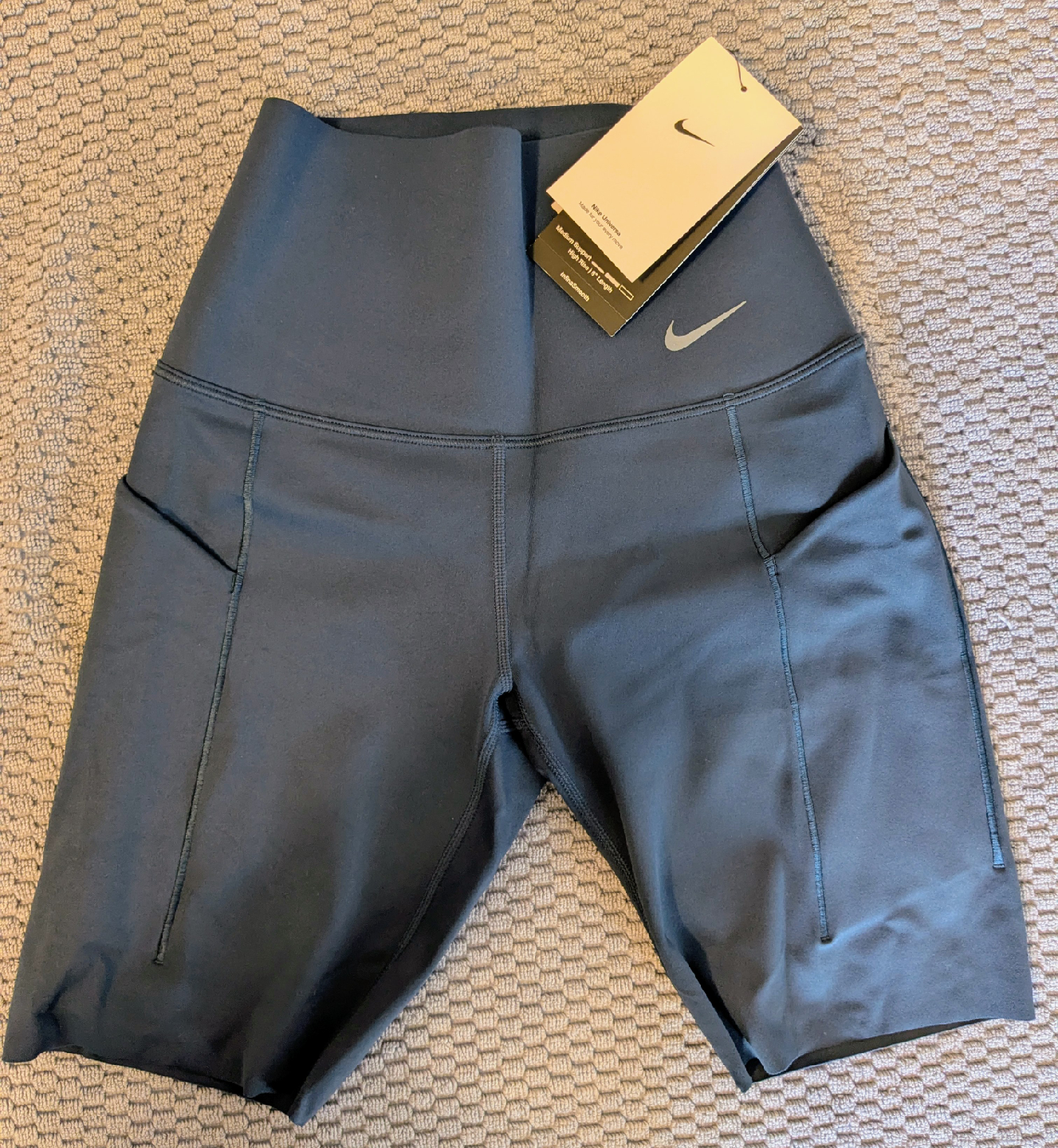 These Nike Infinalon shorts are brand new with tags! They're a size small and feature a high rise and 8" length. The Dri-FIT technology helps sweat evaporate to keep you dry and comfortable. Perfect for workouts or everyday wear