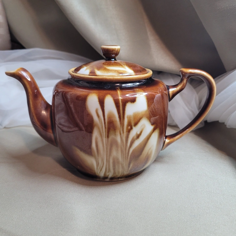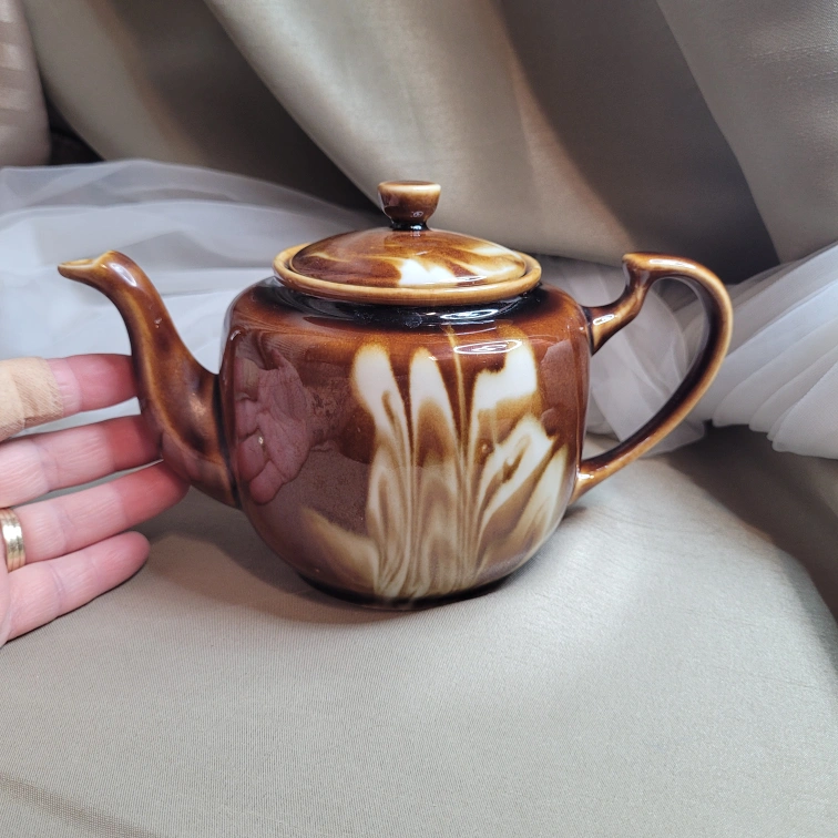 55Vintage Brown Drip Cream Swirl Glaze Ceramic 2 Cup Tea Pot Excellent Condition please see all pictures Please See all my Other Listings, Bundle & Save for a Better Deal! Located in Bradford, May be able to Meet, Shipping Offered at Buyers Expense, Please contact me for more Info & to make arrangements, sorry no holds without an ET, Thank you so much for Looking!