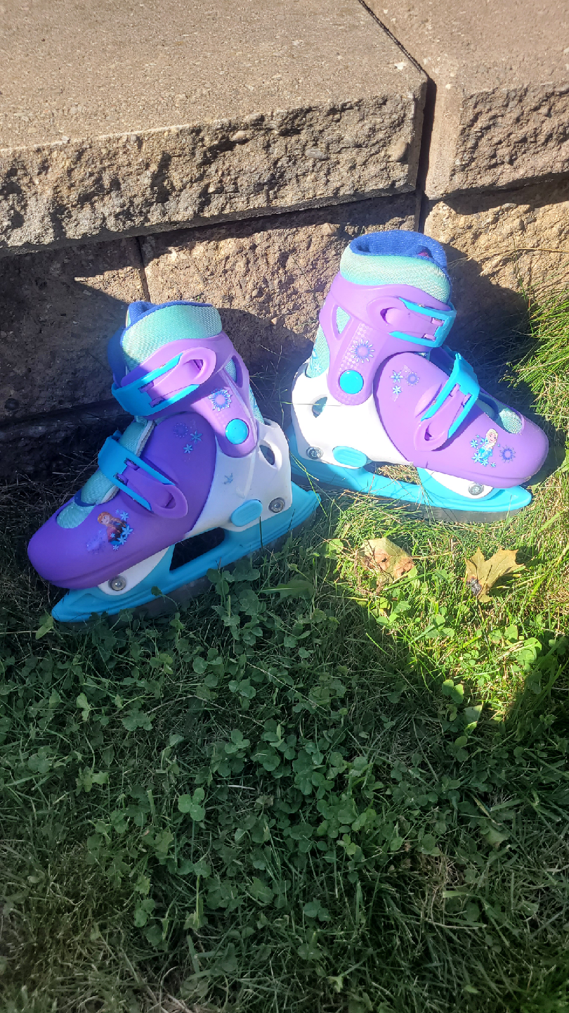 These Disney Frozen ice skates are perfect for little ones who love to skate! They feature a fun Frozen design with Anna and Elsa. They are in great condition and ready for the rink. Size is adjustable from 8 to 11 children's size.