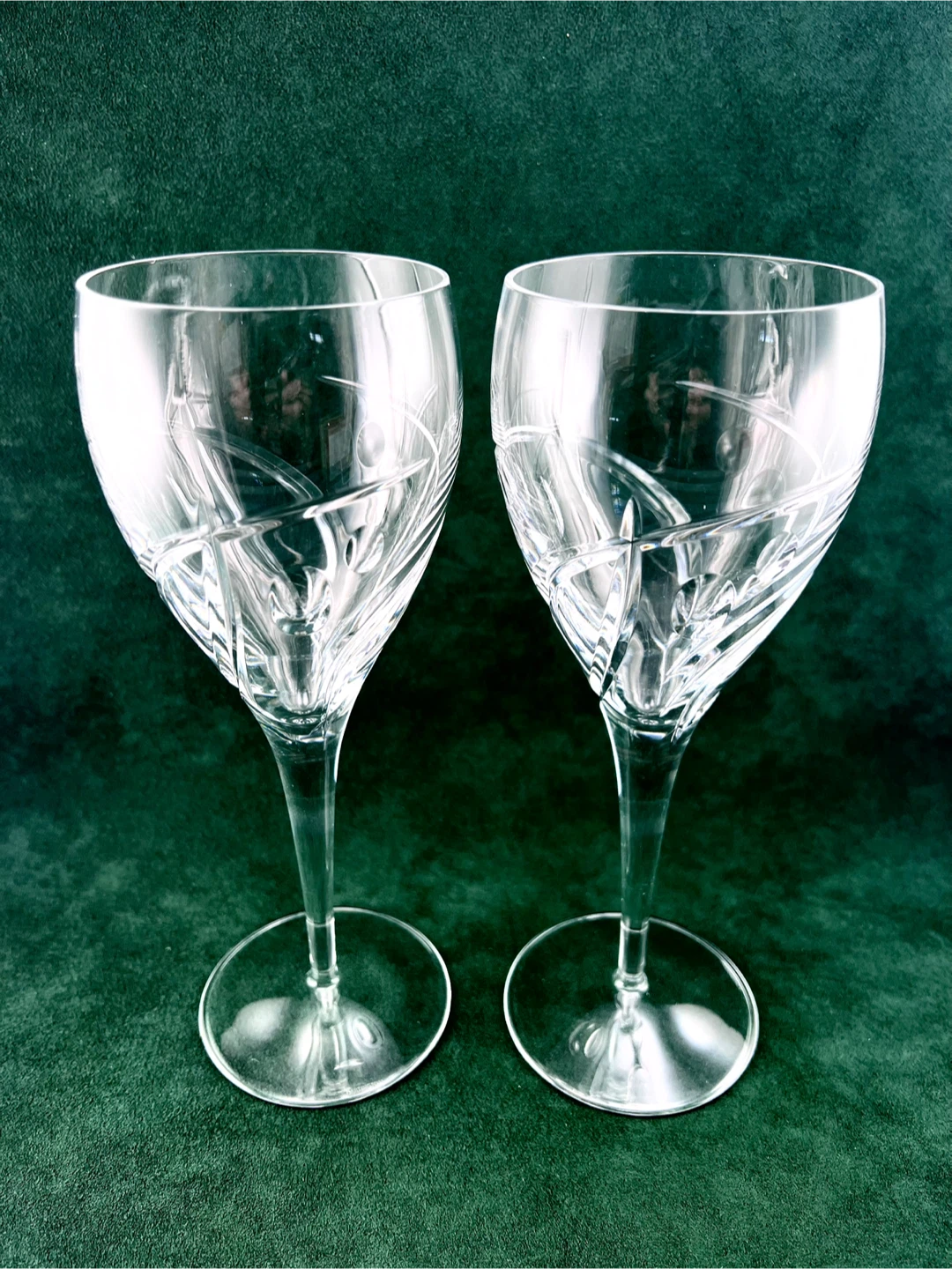 Pair of Dartington (made in England) large fine crystal wine glasses with modern design. No chips or etching/clouding