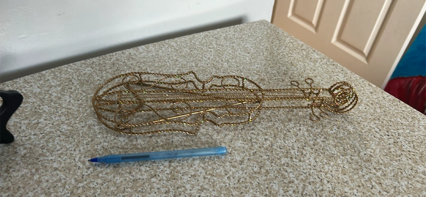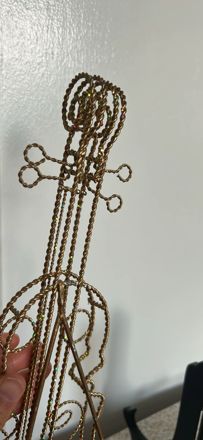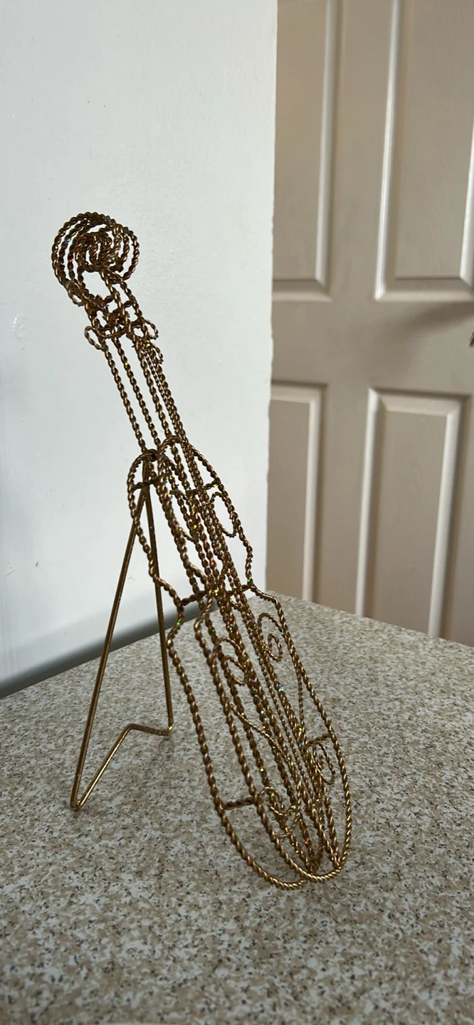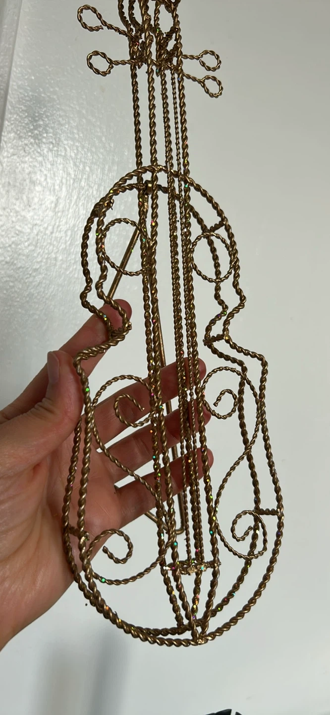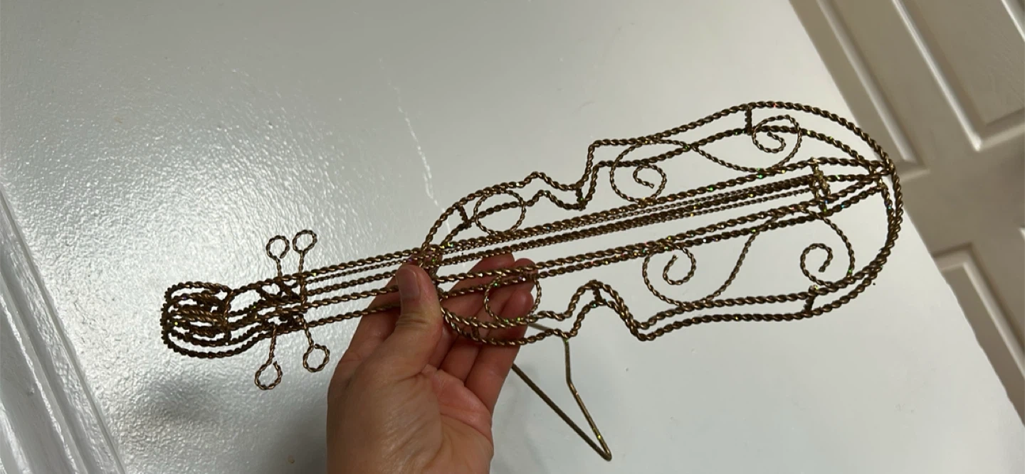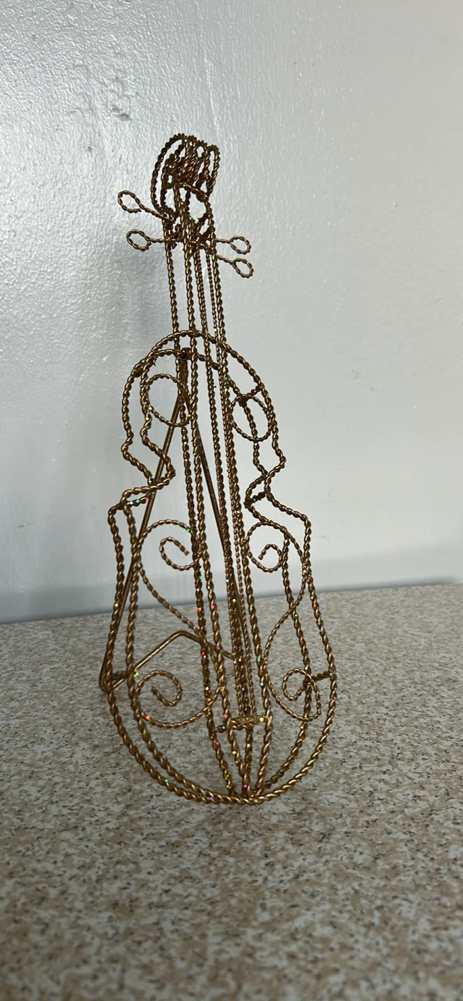 Here's a unique decorative piece! It's a violin made of wire, perfect for adding a touch of musical charm to any room