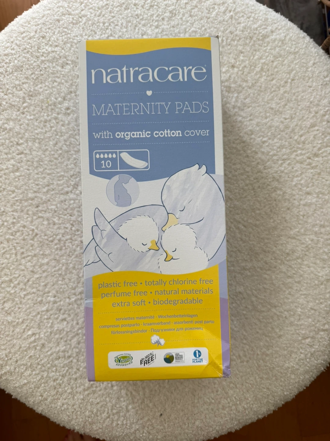 Natracare Maternity Pads with organic cotton cover, containing 10 pads.