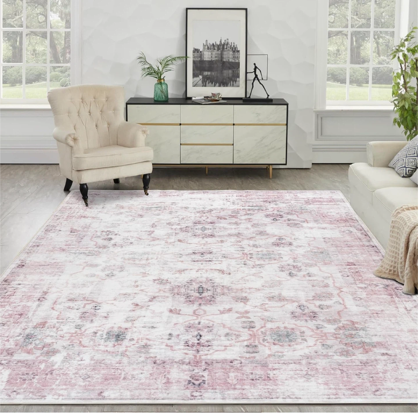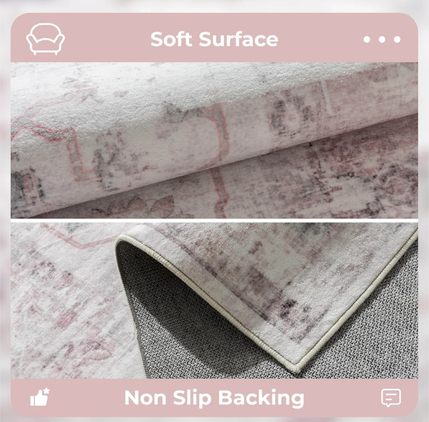Distressed Area Rug 8x10 ft - Soft Surface, Non-Slip Backing