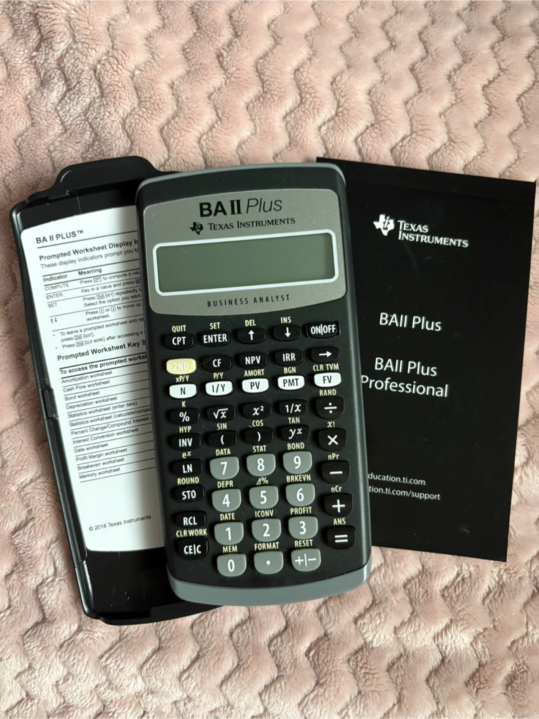 Selling a Texas Instruments BA II Plus financial calculator. It's in great condition and comes with the case and manual. Perfect for business students!