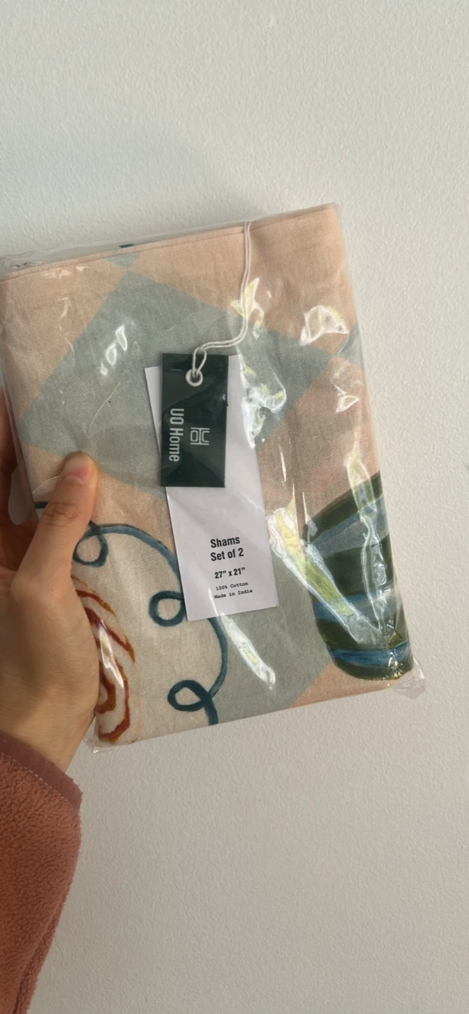 Selling a brand new set of UO Home shams! This set includes two shams, each measuring 27" x 21". They are made of 100% cotton and still in the original packaging
