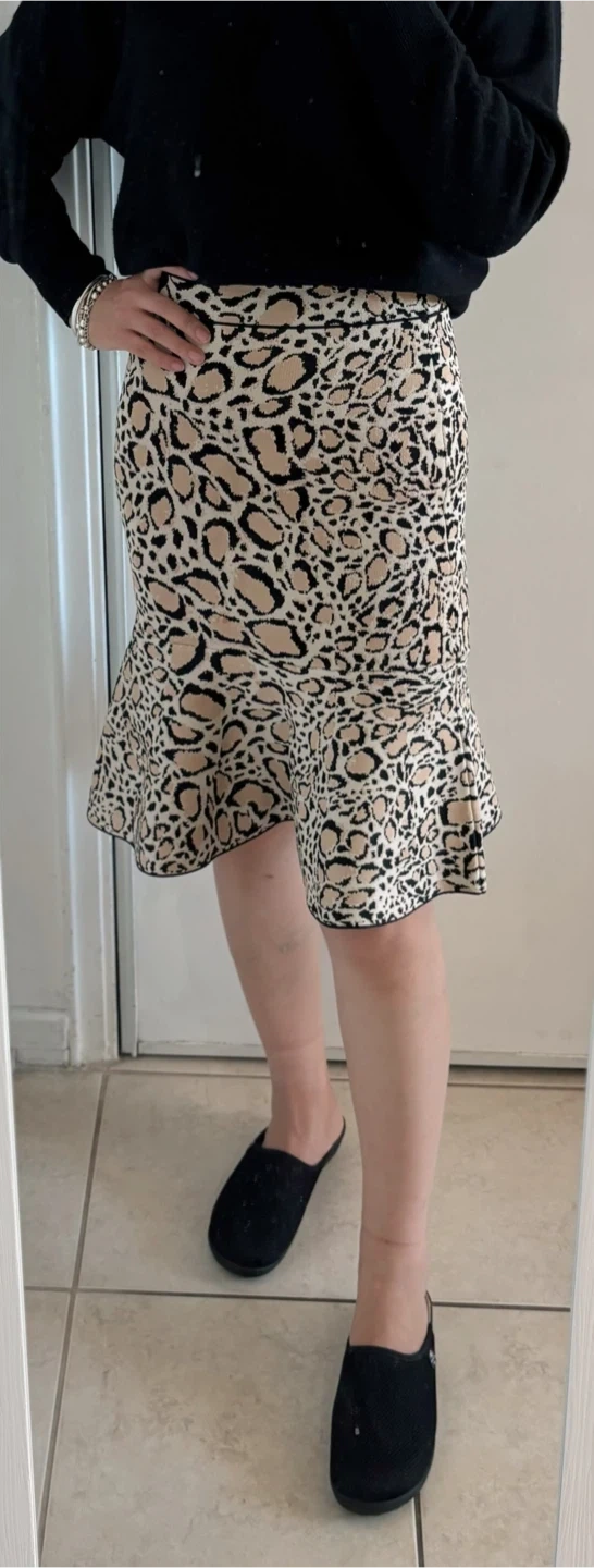 🥕BCBG Leopard Print Ruffle Hem Skirt,size small!🥰