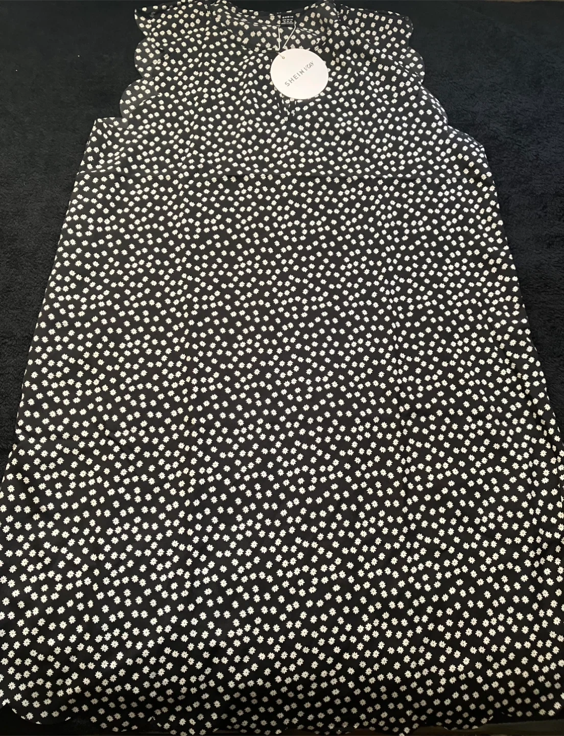 Hi, I am aelling a Shein black scalloped floral dress in excellent condition! It's a size XL and the dress features a lovely floral pattern. Perfect for a casual or dressed-up look! Pick up only. (In Scarborough.) Thank you for your interest!