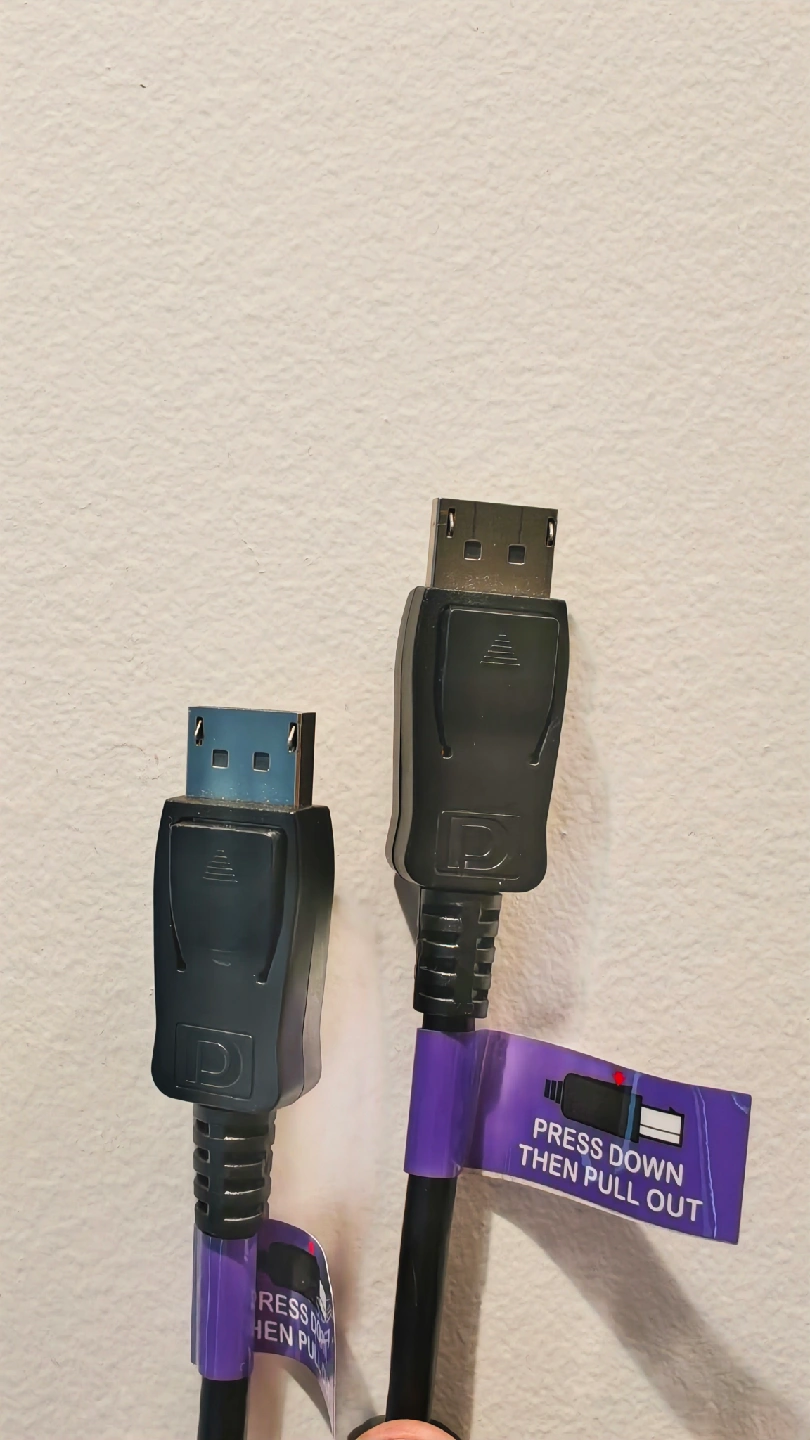 Selling a DisplayPort cable in black. It's in great condition and ready for a new home! The cable has a handy "Press Down Then Pull Out" label for easy use
