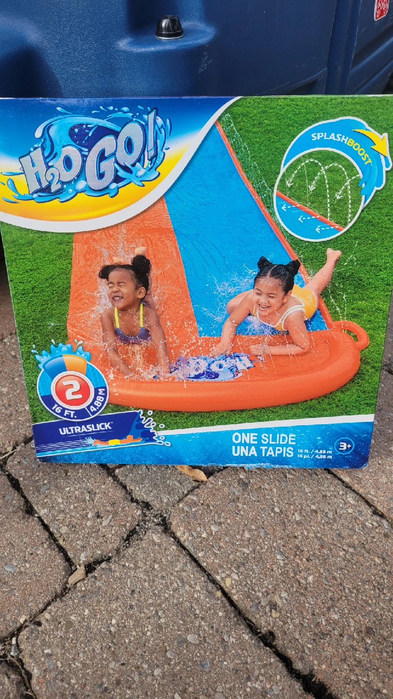 Get ready for some summer fun with this H2OGO! water slide! Never been used, still in original box. It's 16 feet long and features a splash boost for extra excitement. Perfect for kids ages 3 and up!