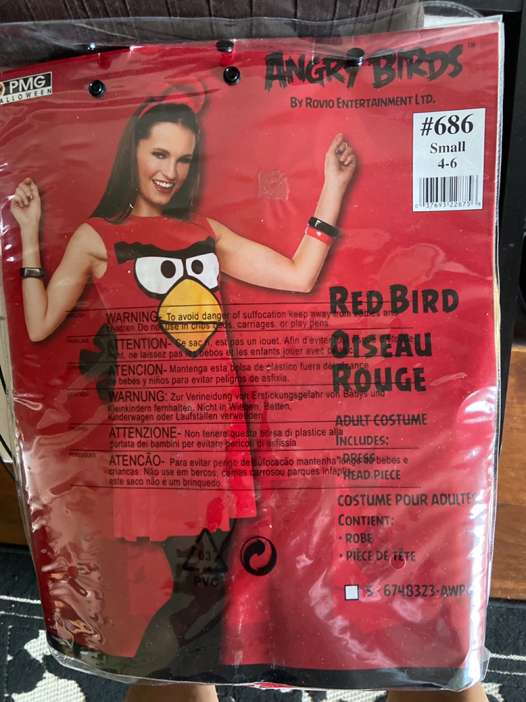 Selling an Angry Birds adult costume, size small (4-6). The costume includes a dress and a head piece. Perfect for Halloween or a themed party!