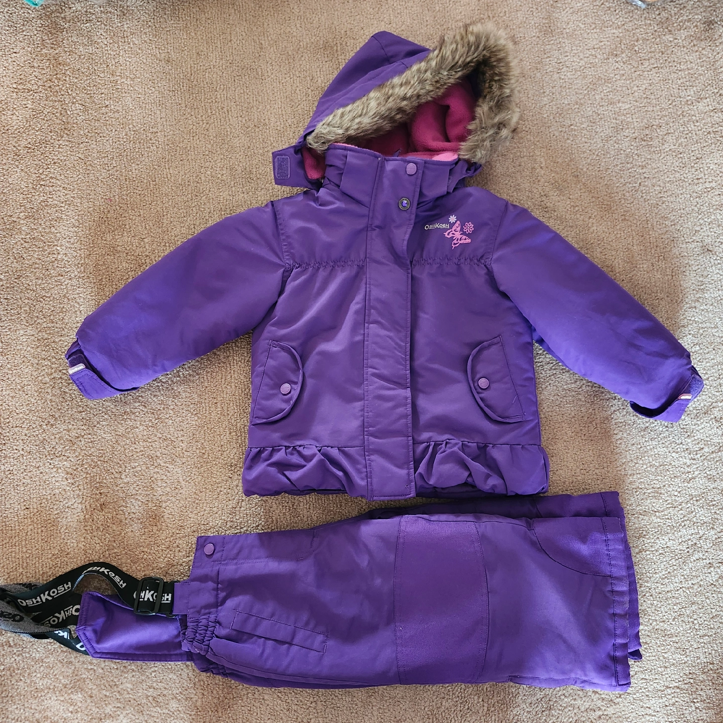 Here's a cute purple OshKosh B'gosh snowsuit for your little one! It's size 2T and in great condition. Perfect for keeping them warm and cozy during the winter months