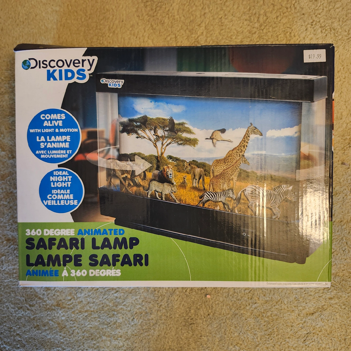 50Check out this Discovery Kids animated safari lamp! It brings the savanna to life with light and motion. It's an ideal night light and features a 360-degree animated scene. The box is included!
