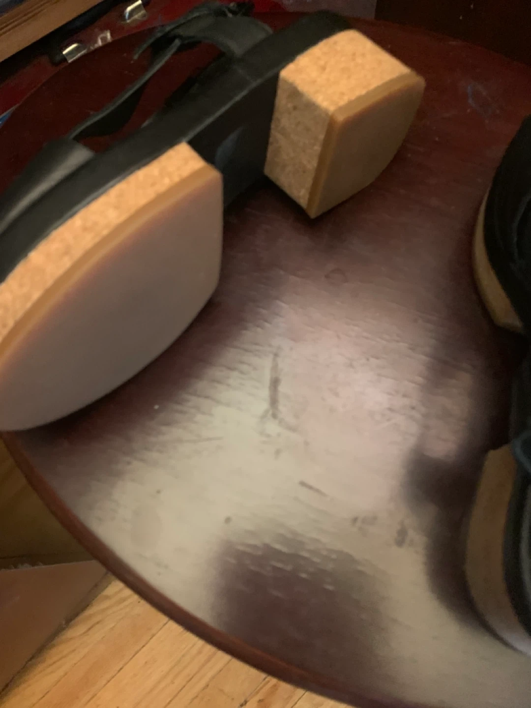 Selling a pair of Clarks Originals sandals in black leather! They feature a cork platform and a buckle closure. Great for adding a bit of height and style to your summer outfits