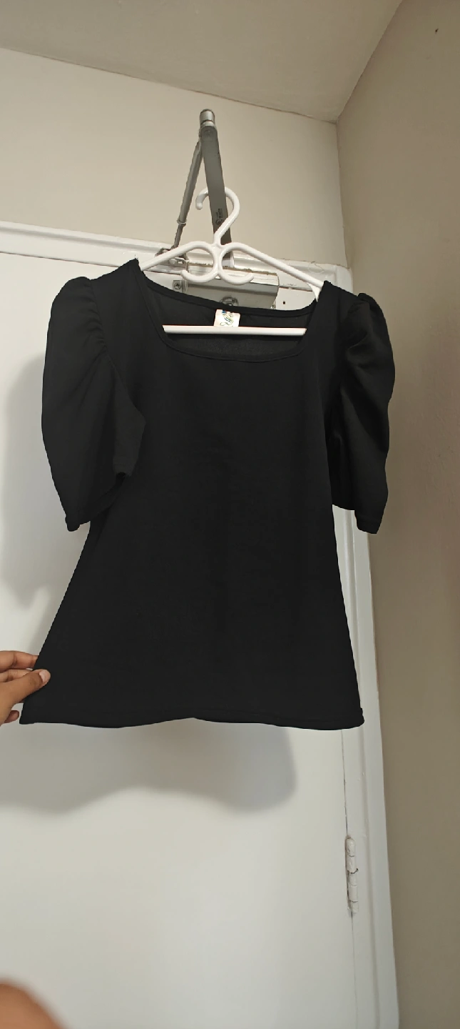 215A cute black blouse with puff sleeves! It's in great condition and would be a nice addition to your wardrobe. From Pet freehouse👍