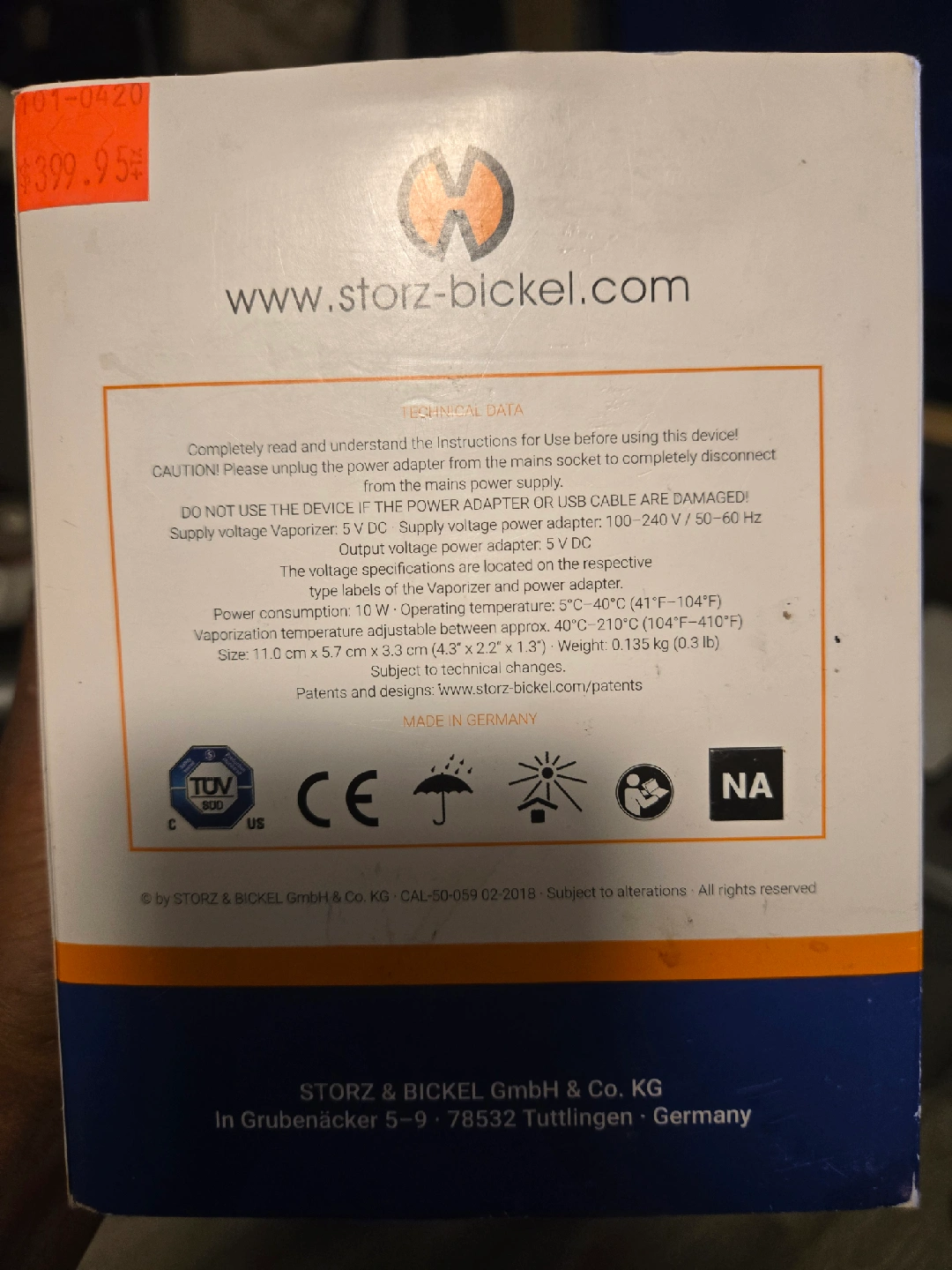 75Selling a Crafty Vaporizer by Storz & Bickel! It comes with the original packaging. Key specs: - Size: 11.0 cm x 5.7 cm x 3.3 cm (4.3" x 2.2" x 1.3") - Weight: 0.135 kg (0.3 lb) Selling points: - Inhale the difference - 20% more battery power