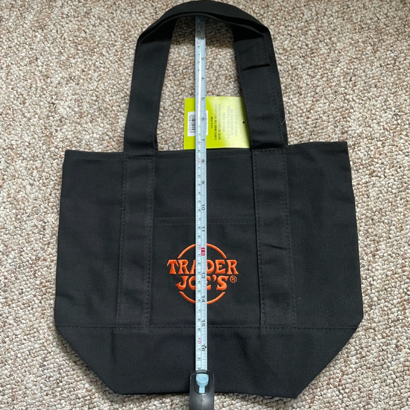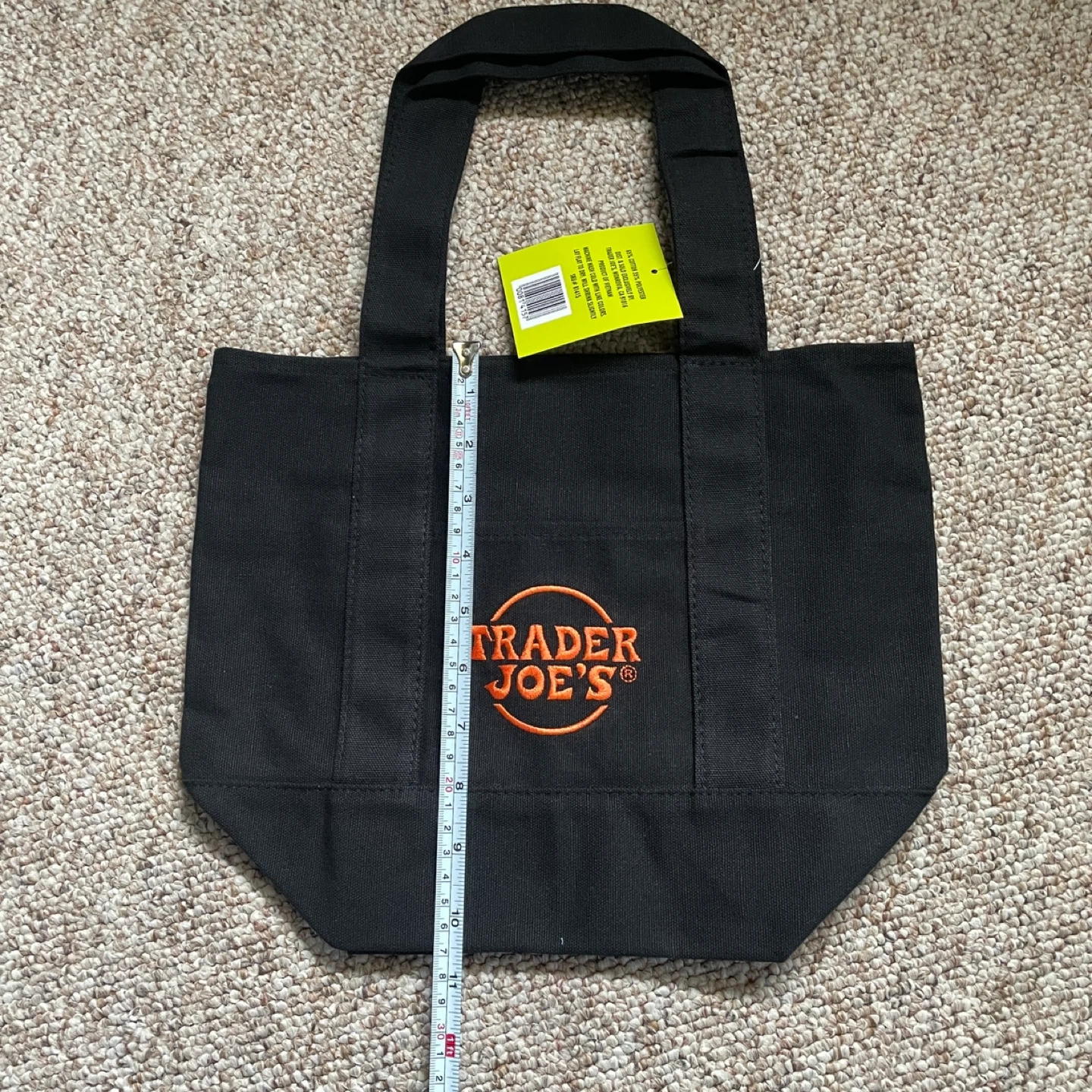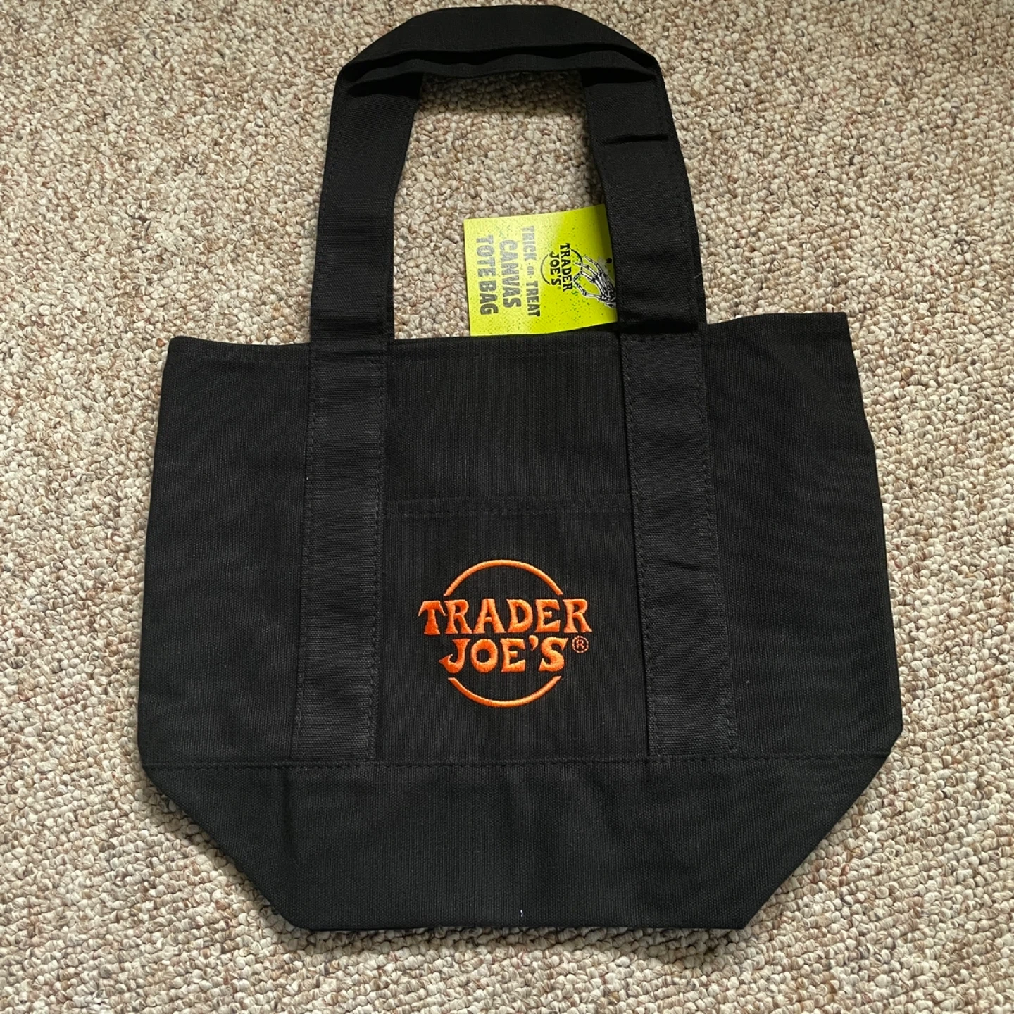 This is a brand new Trader Joe's black canvas tote bag, still with the original tags attached! It features the Trader Joe's logo in orange. It’s a limited Halloween edition.