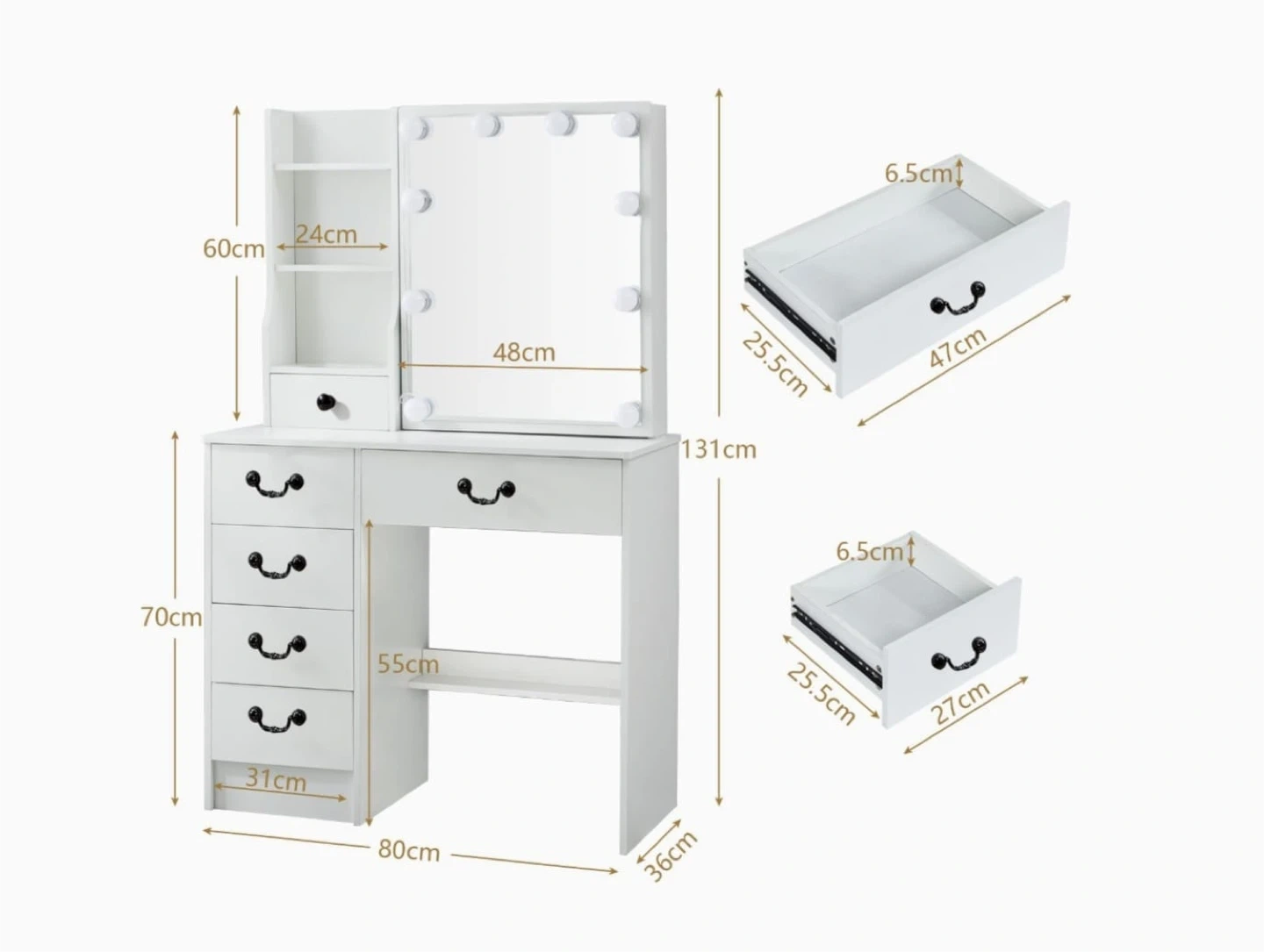 🧺 Rangement pratique : 6 tiroirs + 3 étagères pour tous tes produits de beauté et accessoires.