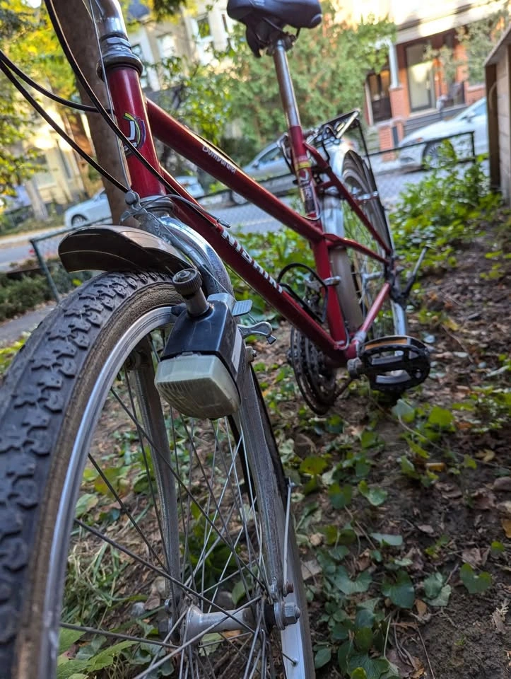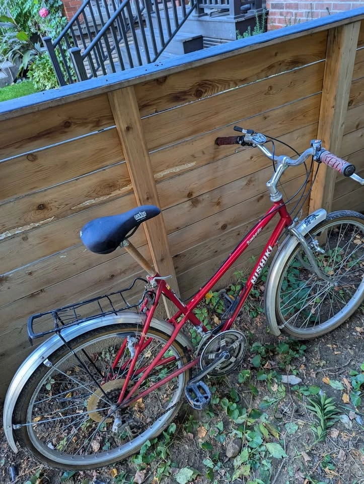 Features: Pannier, dynamo light fixture, bottle cage. Found in a shed during house reno. Beautiful frame and colour. Cool retro look.