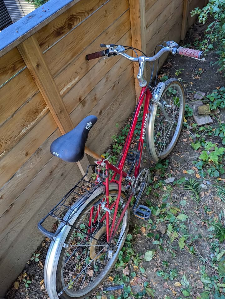 Needs some TLC to bring to former glory. WD-40 on the chain. Back tyre needs a new tube. Brakes need tightening. All small fixes.