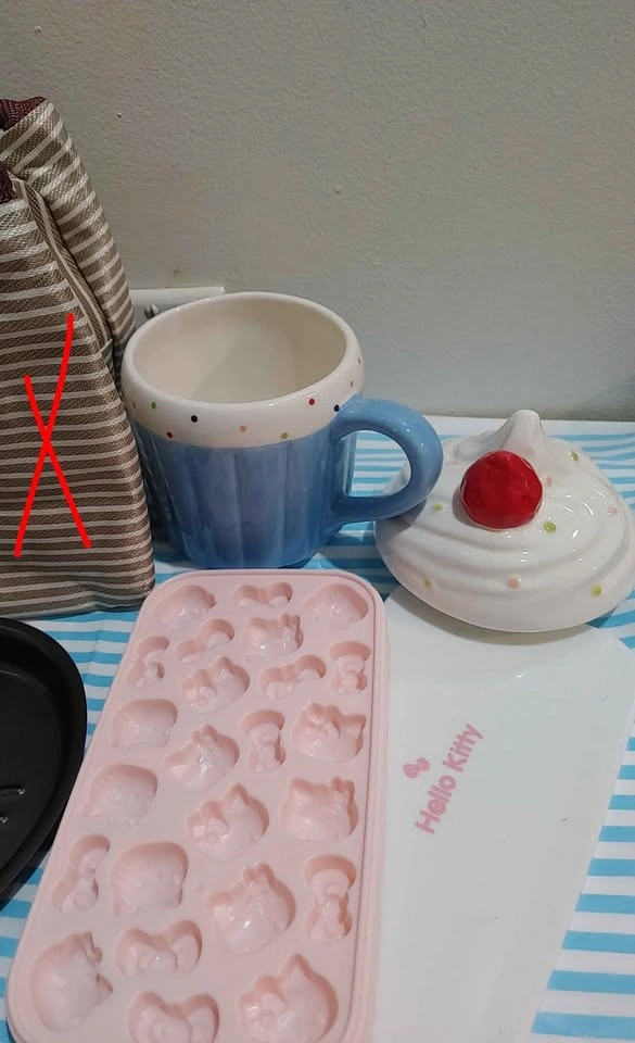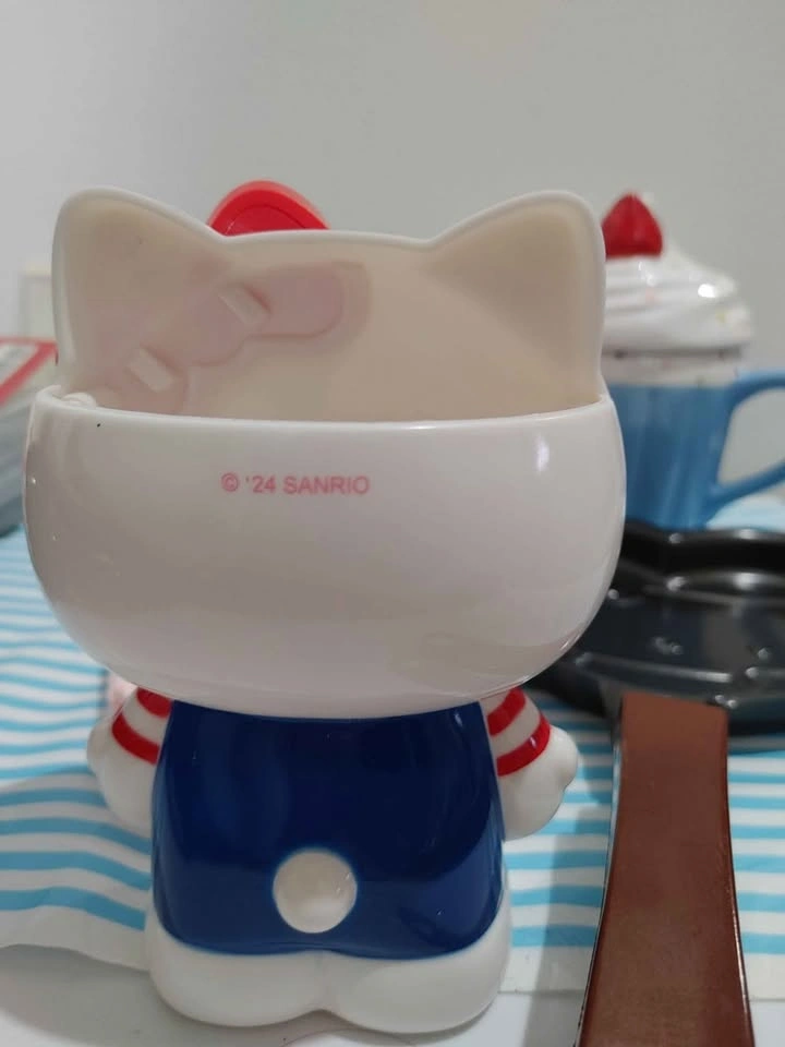 33Hello Kitty Themed Kitchen Set. Includes: - a Hello Kitty container to put utensils (or pencils, or make up brushes) - mini kitty frying pan for eggs, veggies etc - mold for ice, pudding, jello - cupcake cup with lid All brand new. Sold as a set for $15. Good for gifts or stocking stuffers for Christmas 🎄:) Thanks!
