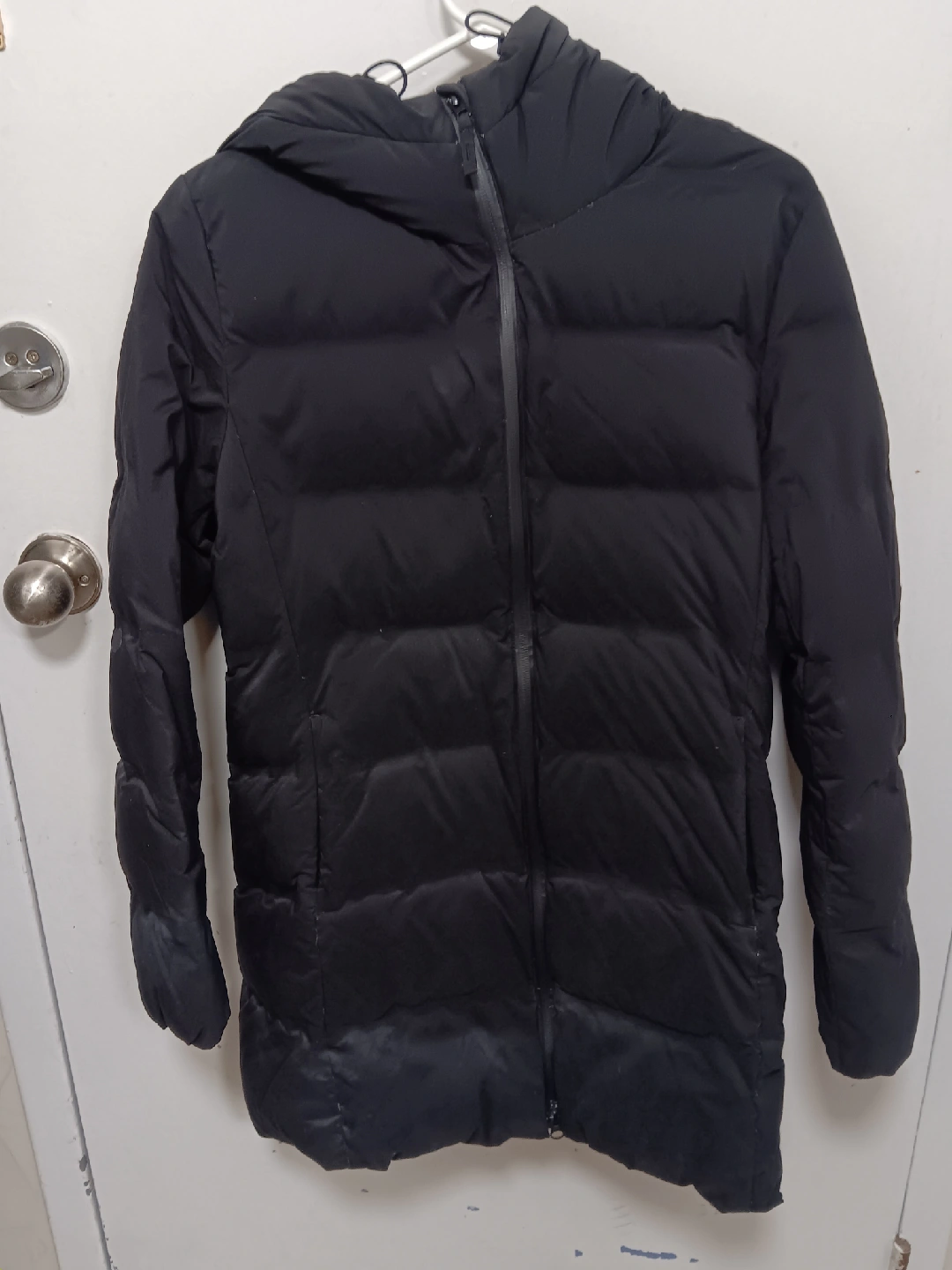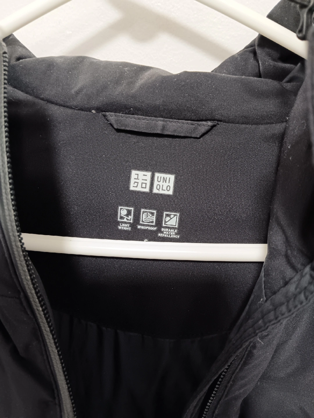 Selling a Uniqlo black down puffer jacket perfect for the winter weather. The material is a blend of down and polyester, making it durable and comfortable. It's in great condition and ready for a new home!
