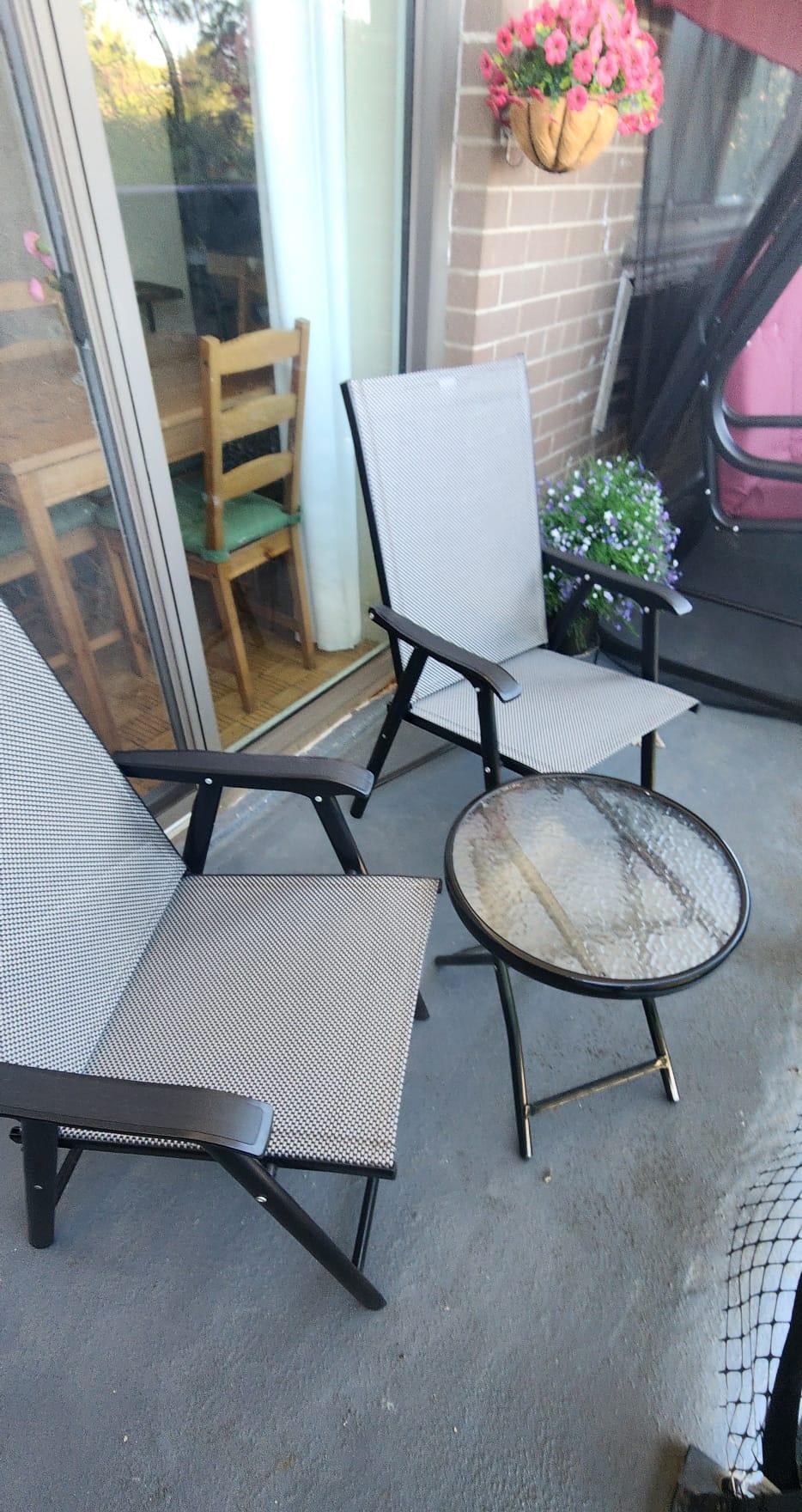 1 / 11 / 1Buy & SellBalcony Set (2 Chairs + Glass Table)Balcony Set (2 Chairs + Glass Table)$100Excellent condition. Tempered glass table, sturdy chairs, stylish for patio or balcony. π North York β pickup only.ConditionNewWHERE TO MEETCheck LocationView MapSELLERverifiedJoBayview Village751 review0 chatsΒ·0 favoritesΒ·38 viewsSEND CHAT TO SELLERHi Jo! Iβm interested in your listing.Hi Jo! Iβm interested in your listing.Get the Karrot app to chatSign In to chat