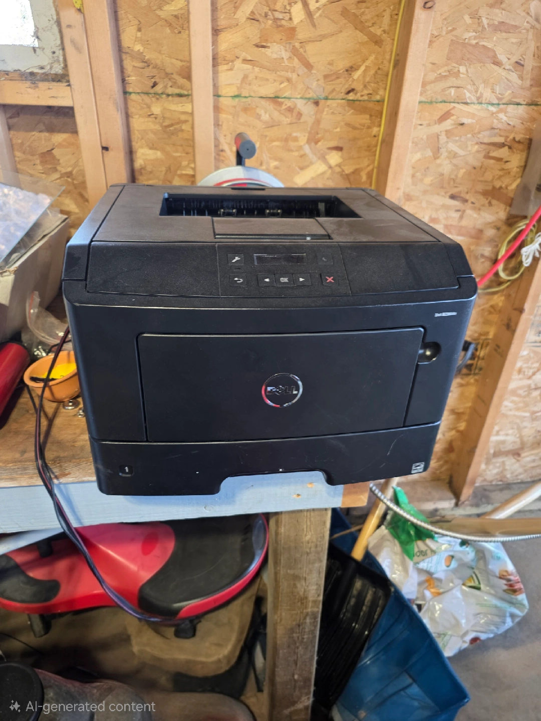 Selling a Dell laser printer in black. It's in good working condition and ready for a new home. Perfect for home or office use!