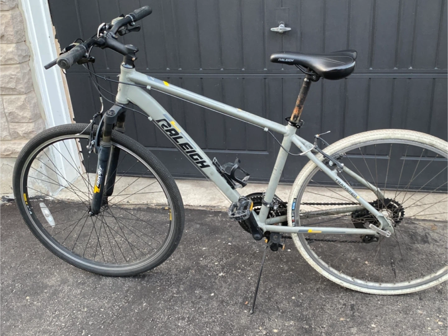 41Selling a Raleigh Transier bike. It's grey with a water bottle holder. Great for getting around town breaks and everything works great let me .