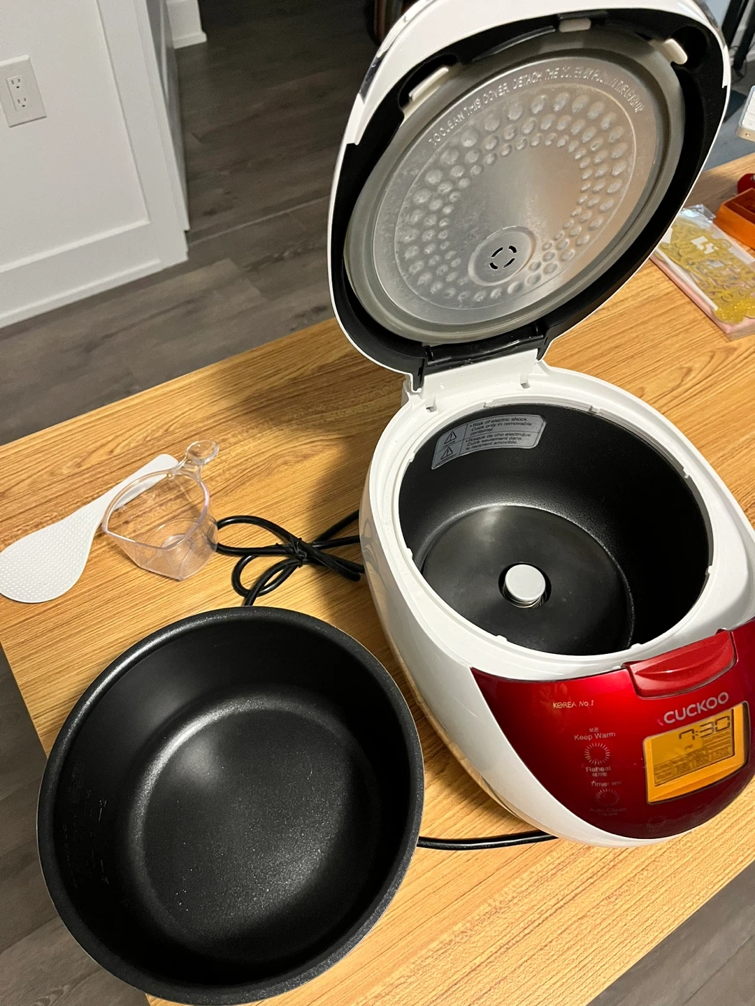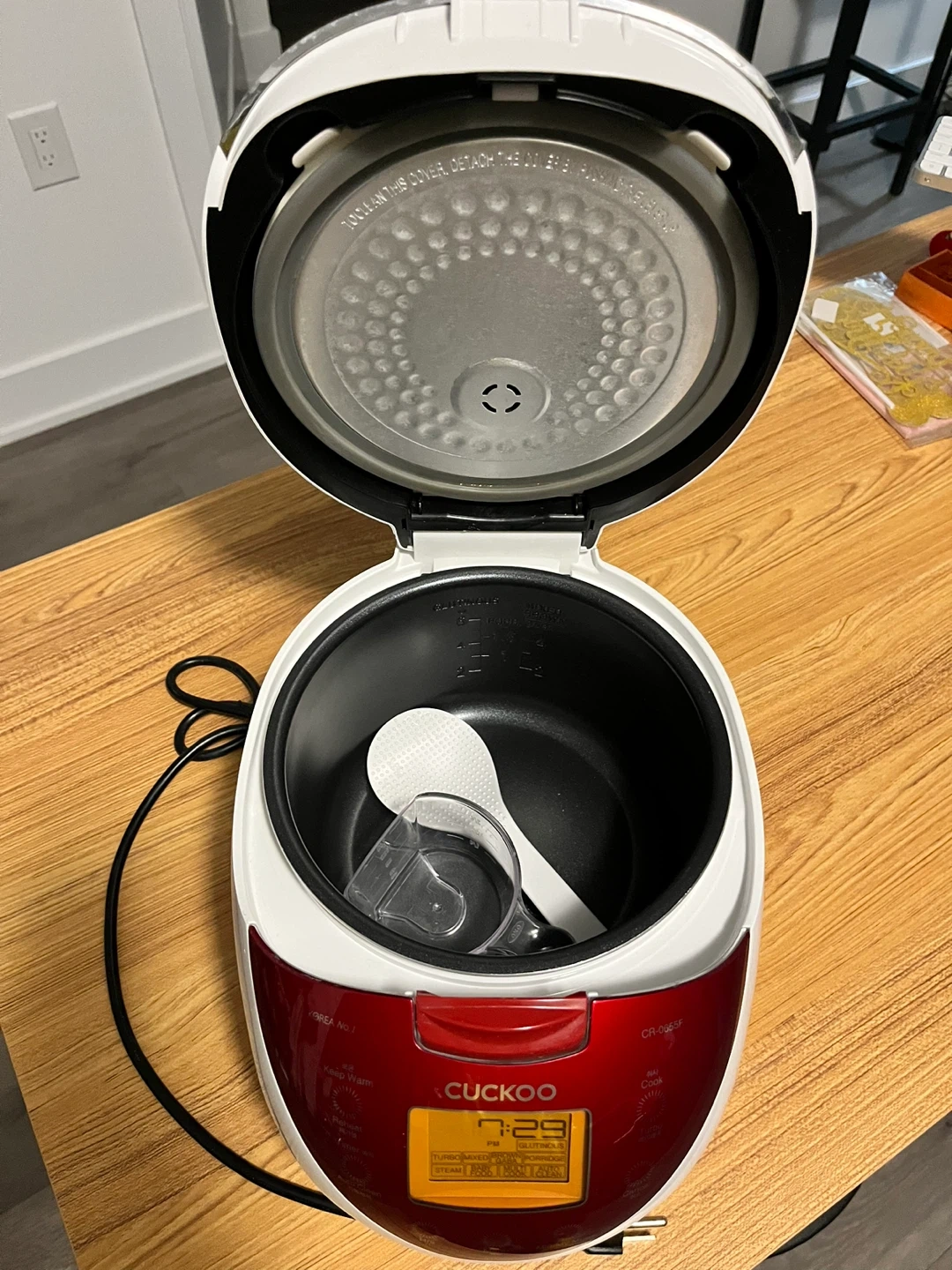 ********Moving-out Sale****** Pick-up is available only between Oct 25 and Oct 27 CUCKOO Rice Cooker 6 Cup Uncooked / 12 Cup Cooked, Classic Fuzzy Logic Rice Cooker Small with Delay Timer & Keep Warm Setting, Versatile Food Steamer for Cooking, Non-Stick Inner Pot, Red (CR-0655F) Didn't use that often, still like new. From Amazon https://a.co/d/2gD0OtX Selling a Cuckoo CR-0655F rice cooker in good condition! It comes with a nonstick inner pot, rice scoop, and measuring cup. Perfect for cooking rice, porridge, and more!