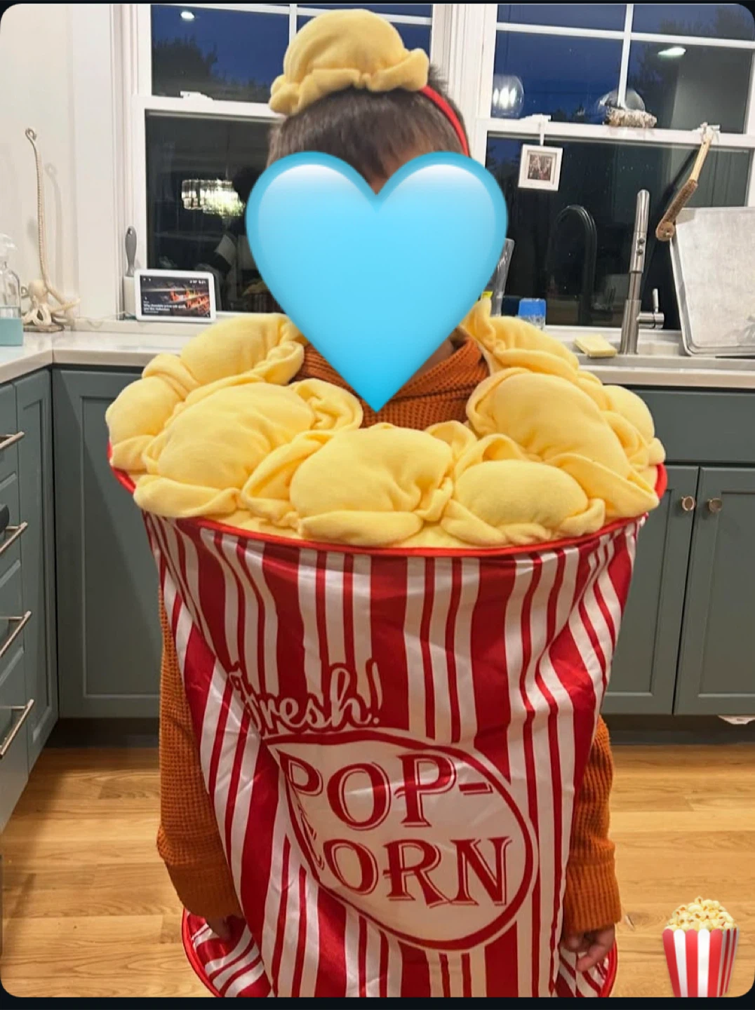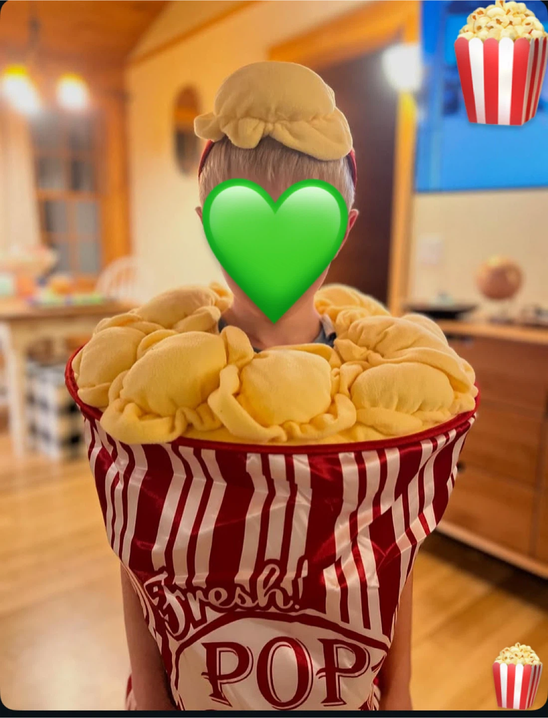 Here’s a fun and adorable popcorn costume for kids! It features a red and white striped bucket design topped with plush popcorn and comes with a matching headband. Perfect for girls or boys ages 5 to 10, whether for Halloween or imaginative dress-up play. Brand new and never used!