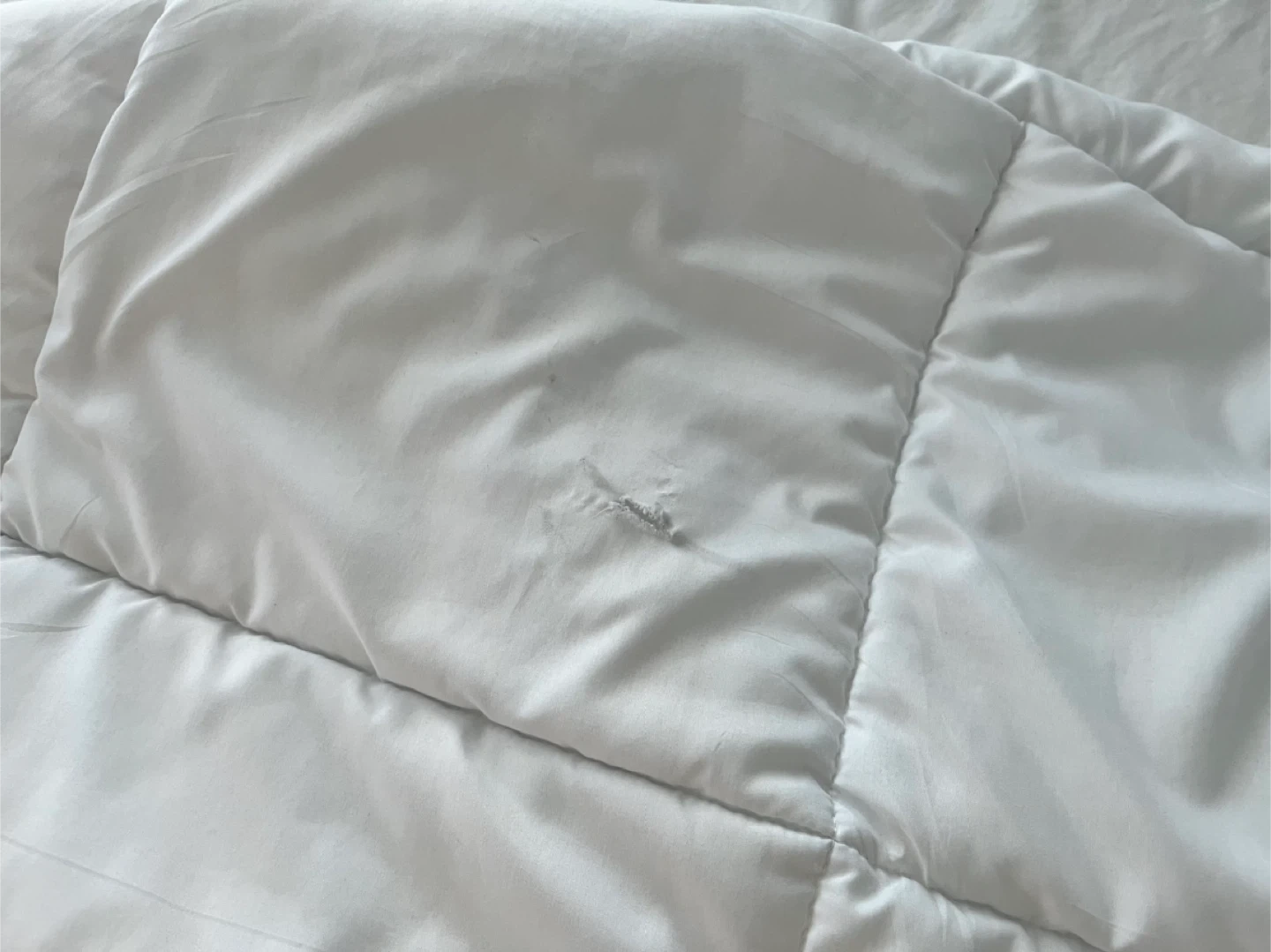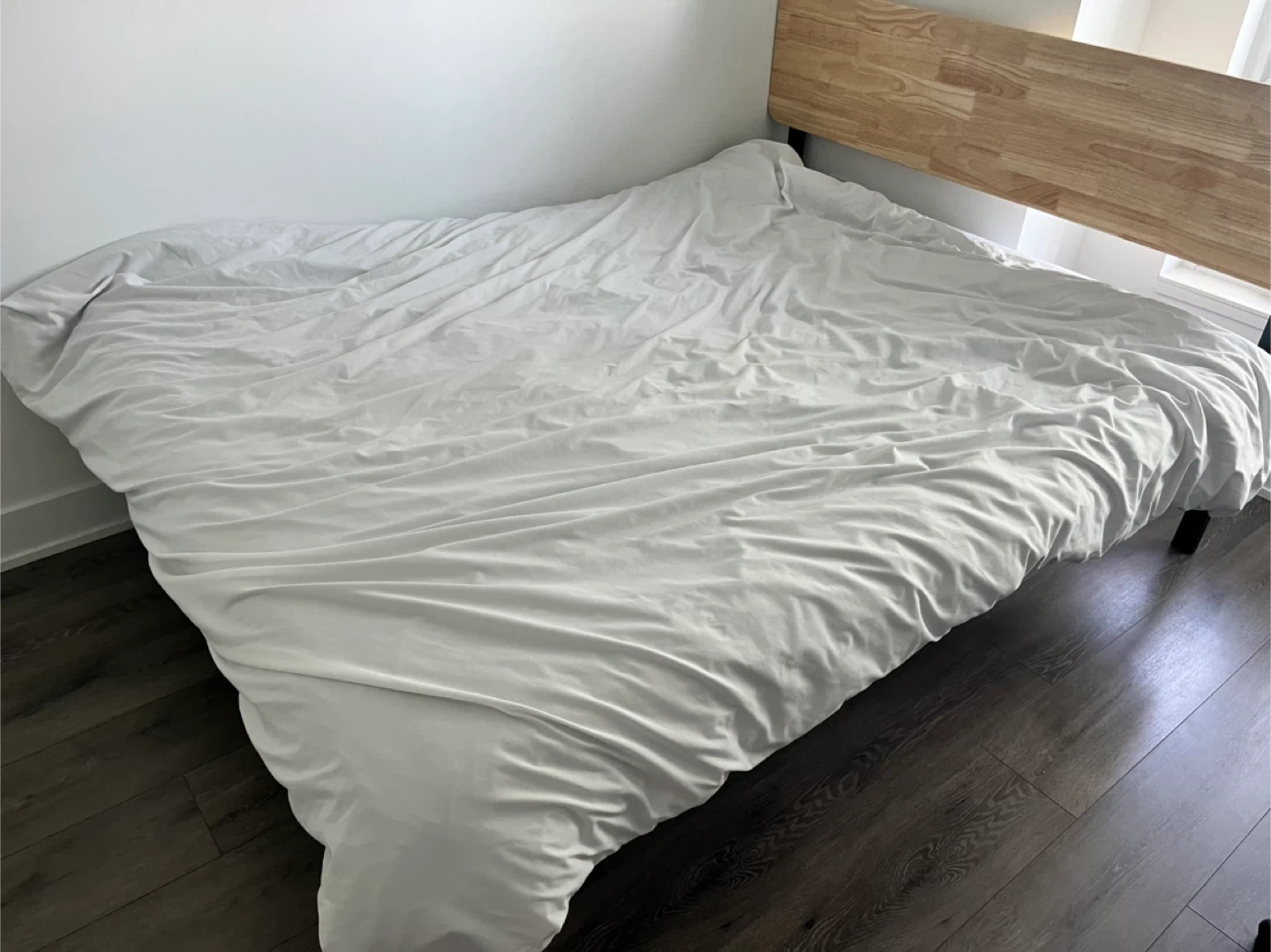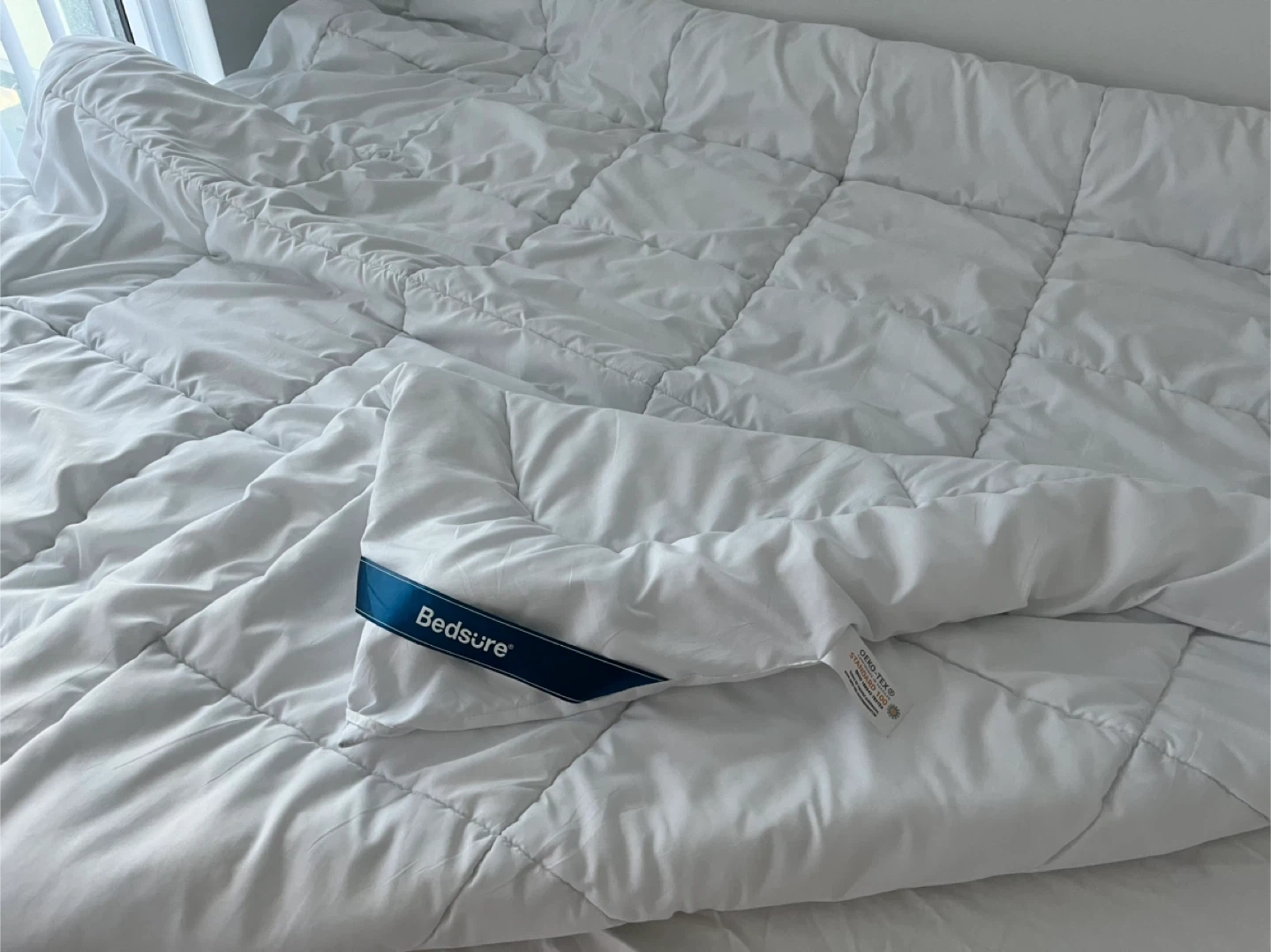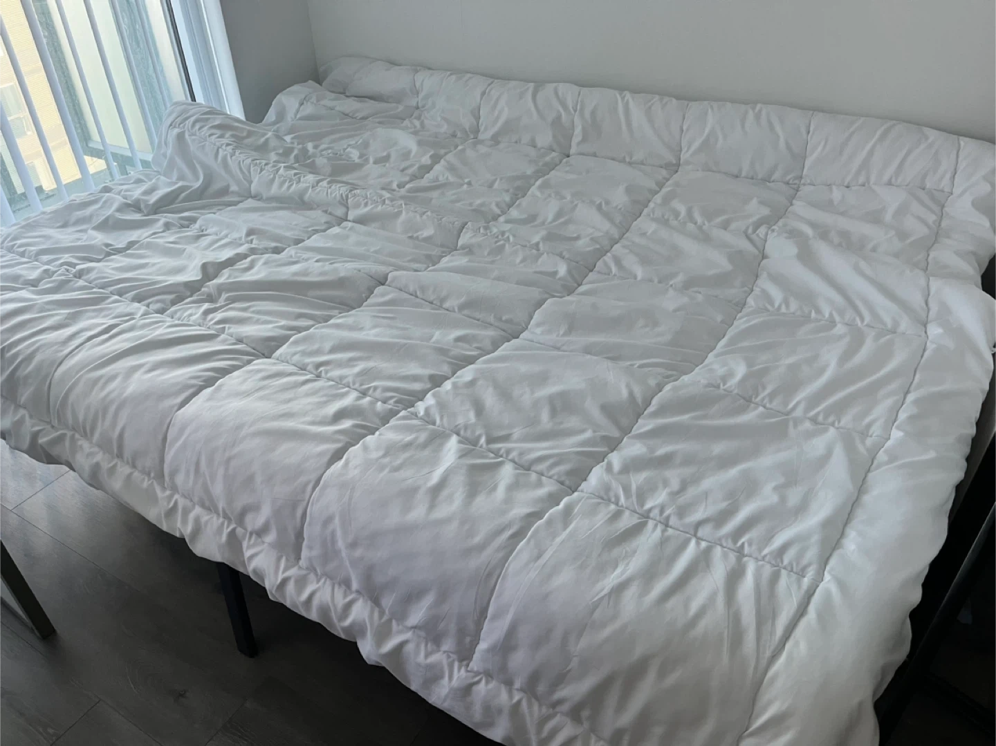 ********Moving-out Sale****** Pick-up is available only on Oct 28th Queen size with corner tabs It's incredibly soft, light, and perfectly warm for year-round use. The filling is evenly distributed to provide cozy comfort without being heavy. Condition & Care: This insert has always been used inside a duvet cover, ensuring it remains clean and bright white with no stains. Important Note on Condition: There is a minor, approximately one-inch surface tear near one edge. This occurred during the first wash when it caught on the rubber gasket of the washing machine door. The tear is superficial and has not gone all the way through; the filling is completely secured inside and does not come out. This is a minor cosmetic imperfection and does not affect the warmth or function of the duvet. I can give you the basic white duvet cover(in the last pic) for free if you want. From Amazon: https://a.co/d/8z8ZXHQ