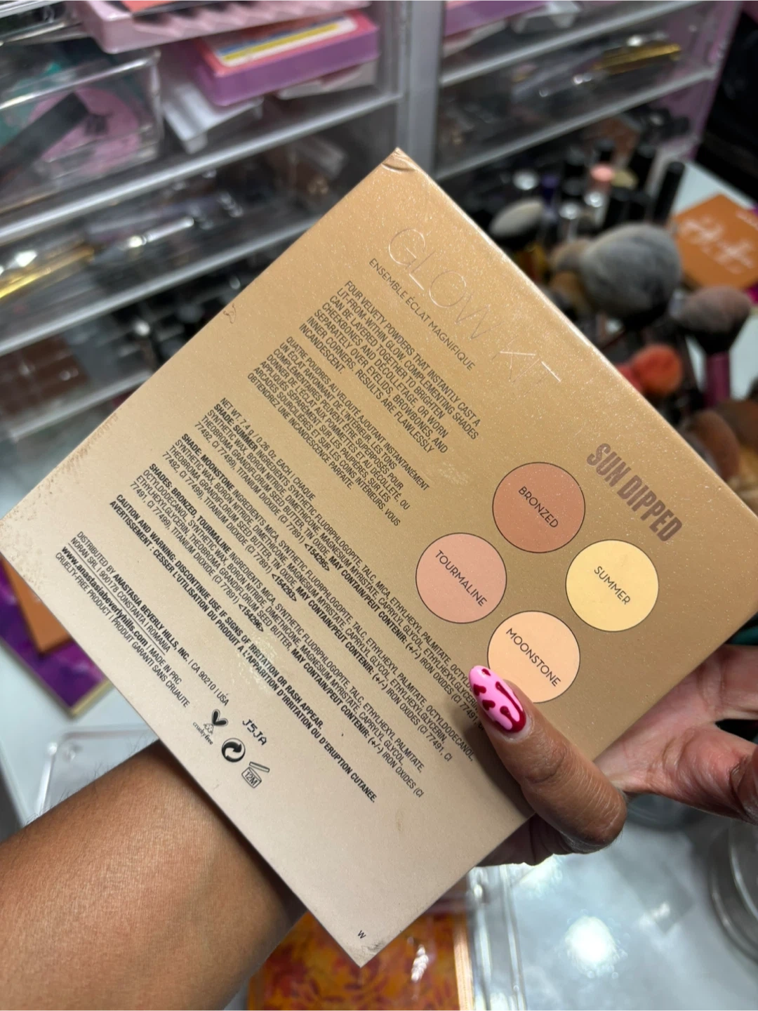 Selling an Anastasia Beverly Hills Sun Dipped Glow Kit! This palette features four illuminating powders in shades of bronzed, tourmaline, moonstone, and summer. Perfect for adding a radiant glow to your complexion