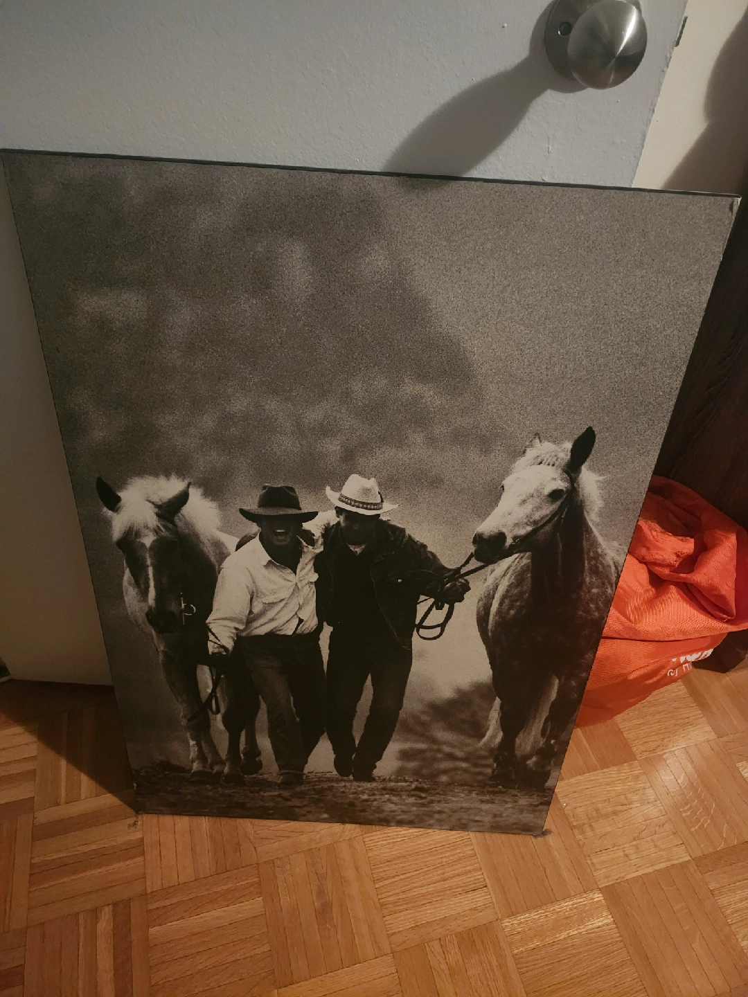369I have a cowboy art print on a hard backing for sale. Like-new. 23" across, 35" high Pick-up only near Main and Danforth.