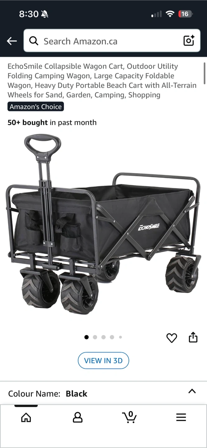 Looking to sell my EchoSmile collapsible wagon cart in black! This wagon is perfect for outdoor utility, camping, gardening, shopping, or even a day at the beach. It's a heavy-duty portable beach cart with all-terrain wheels, making it suitable for sand and other surfaces. Great for anyone needing a reliable and spacious wagon!