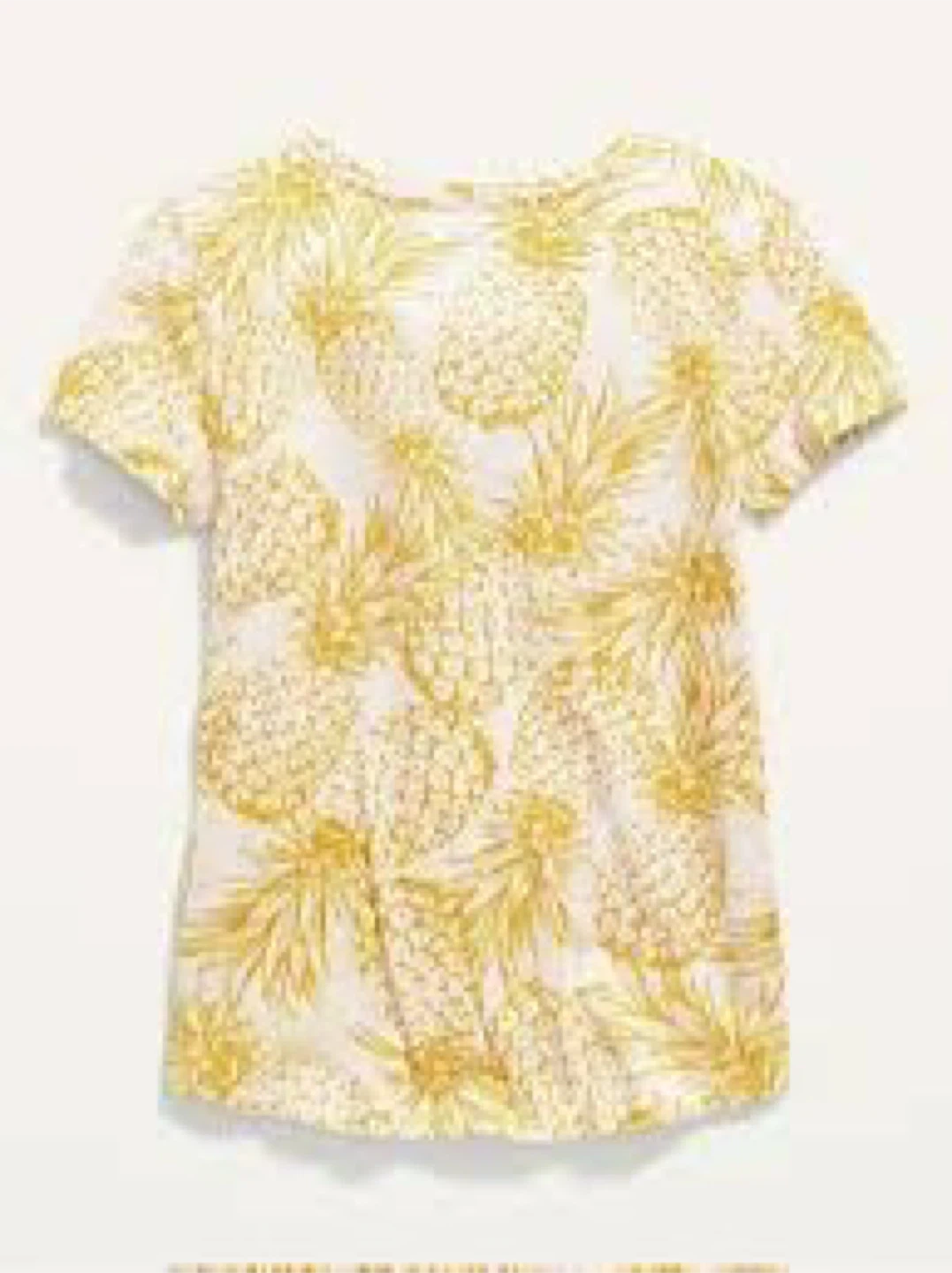 Selling a cute Old Navy t-shirt with a pineapple print! It's in great condition and perfect for summer. The shirt features a fun yellow pineapple design on a white background. It's a comfortable and stylish choice for casual wear