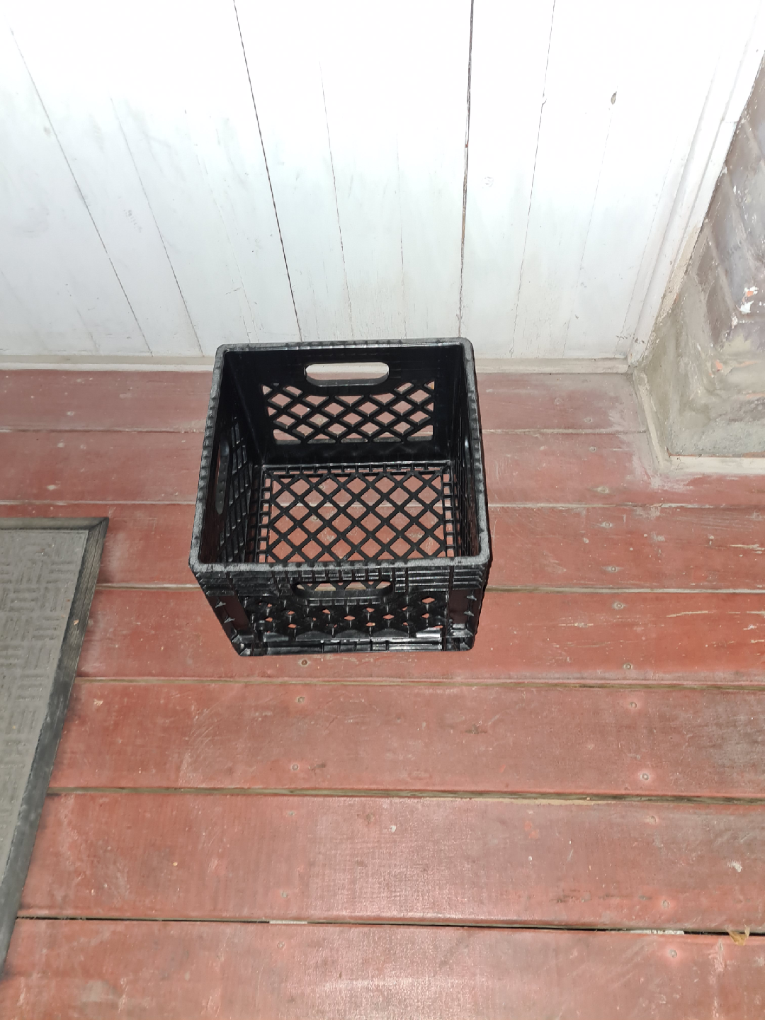 Selling a black milk crate. It's in good condition and ready for a new home! Perfect for storage or organization.