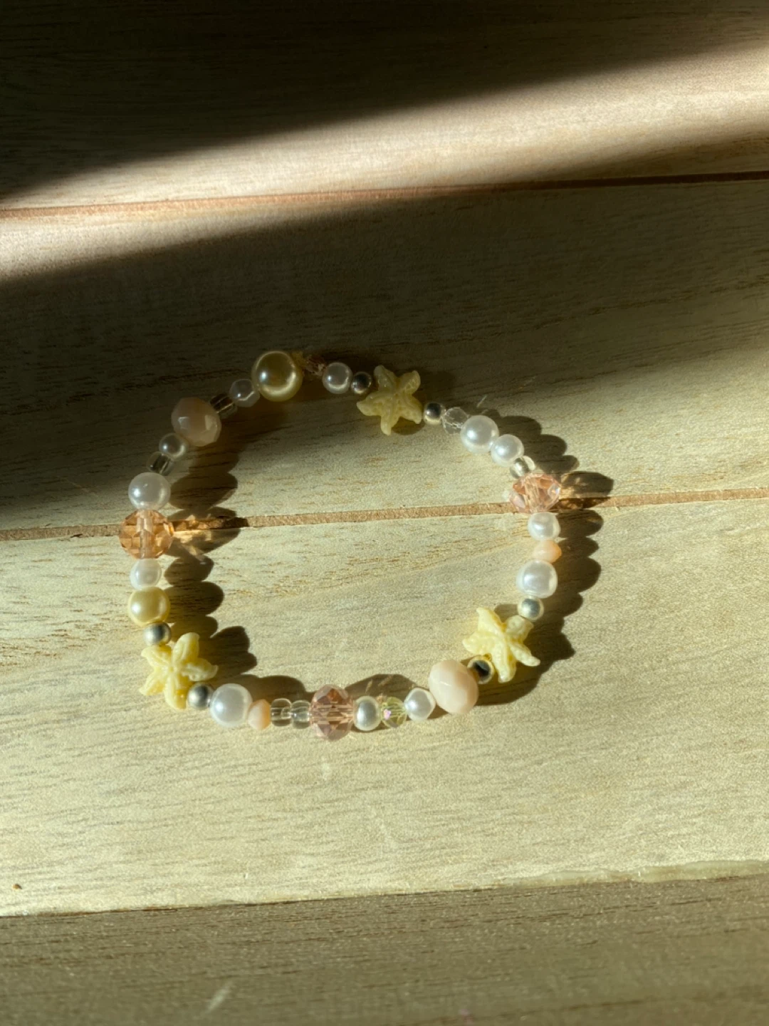 Selling a cute, handmade beaded bracelet! It's got a mix of different beads in various colours and shapes. Perfect for adding a little something extra to your outfit!