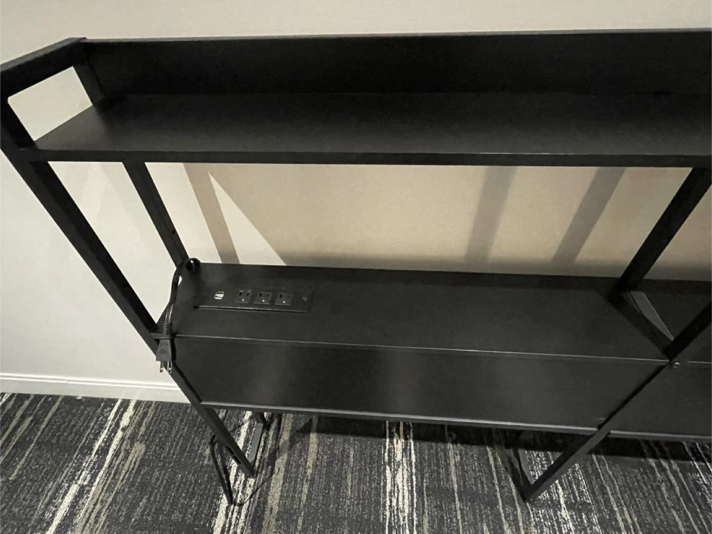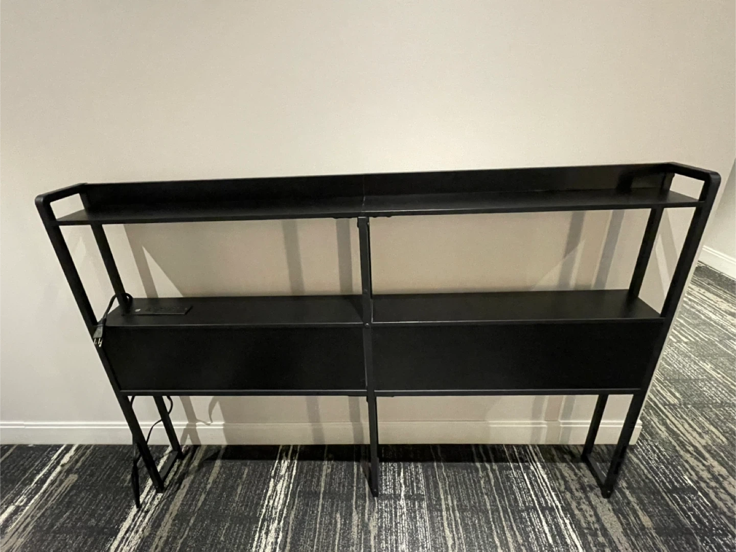 607155cm*106cm*16cm Selling a black console table with shelves. This piece is great for adding storage and style to any room. It has a sleek, modern look that fits well in various decors. Perfect for entryways, living rooms, or even as a media console