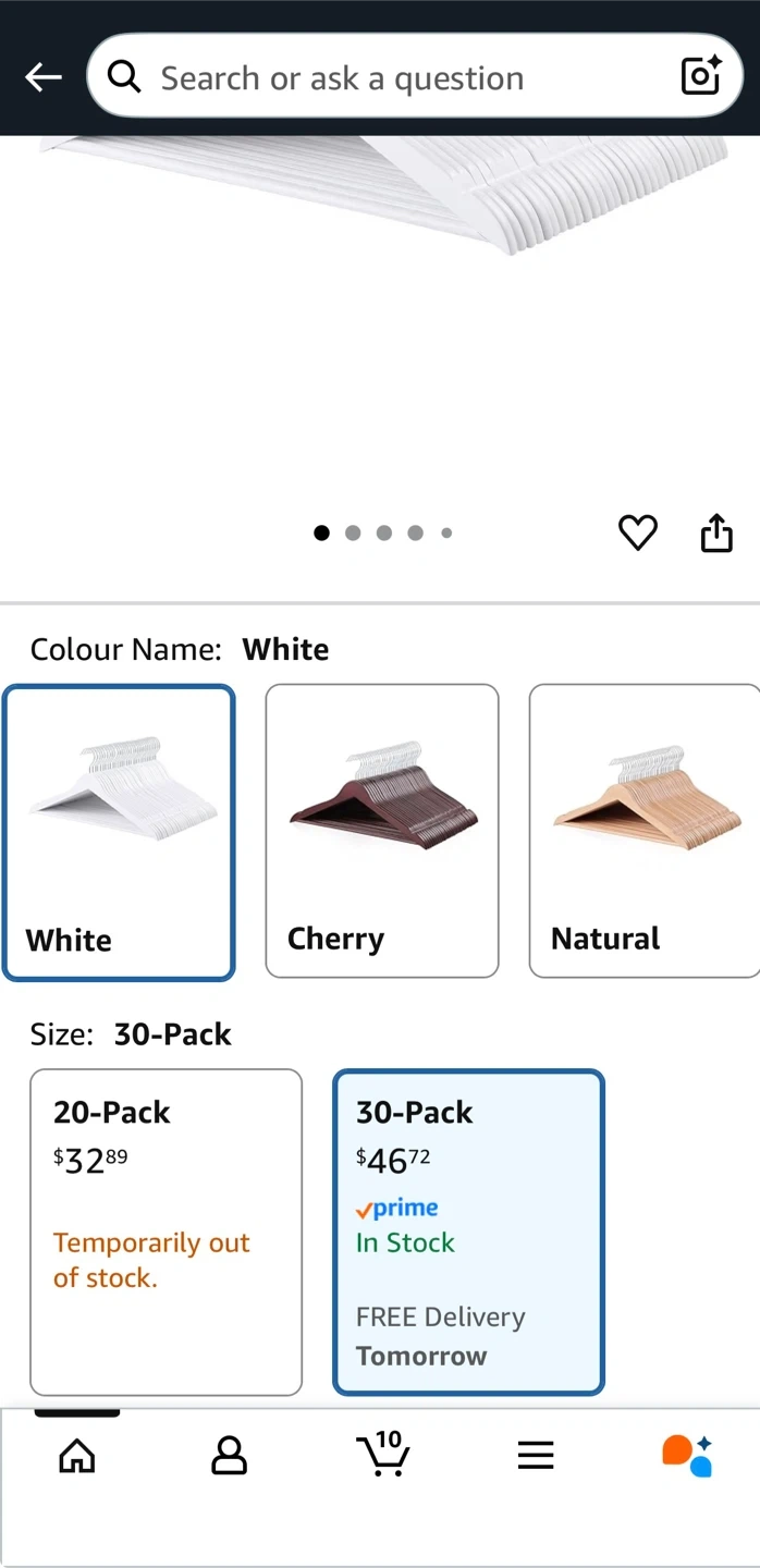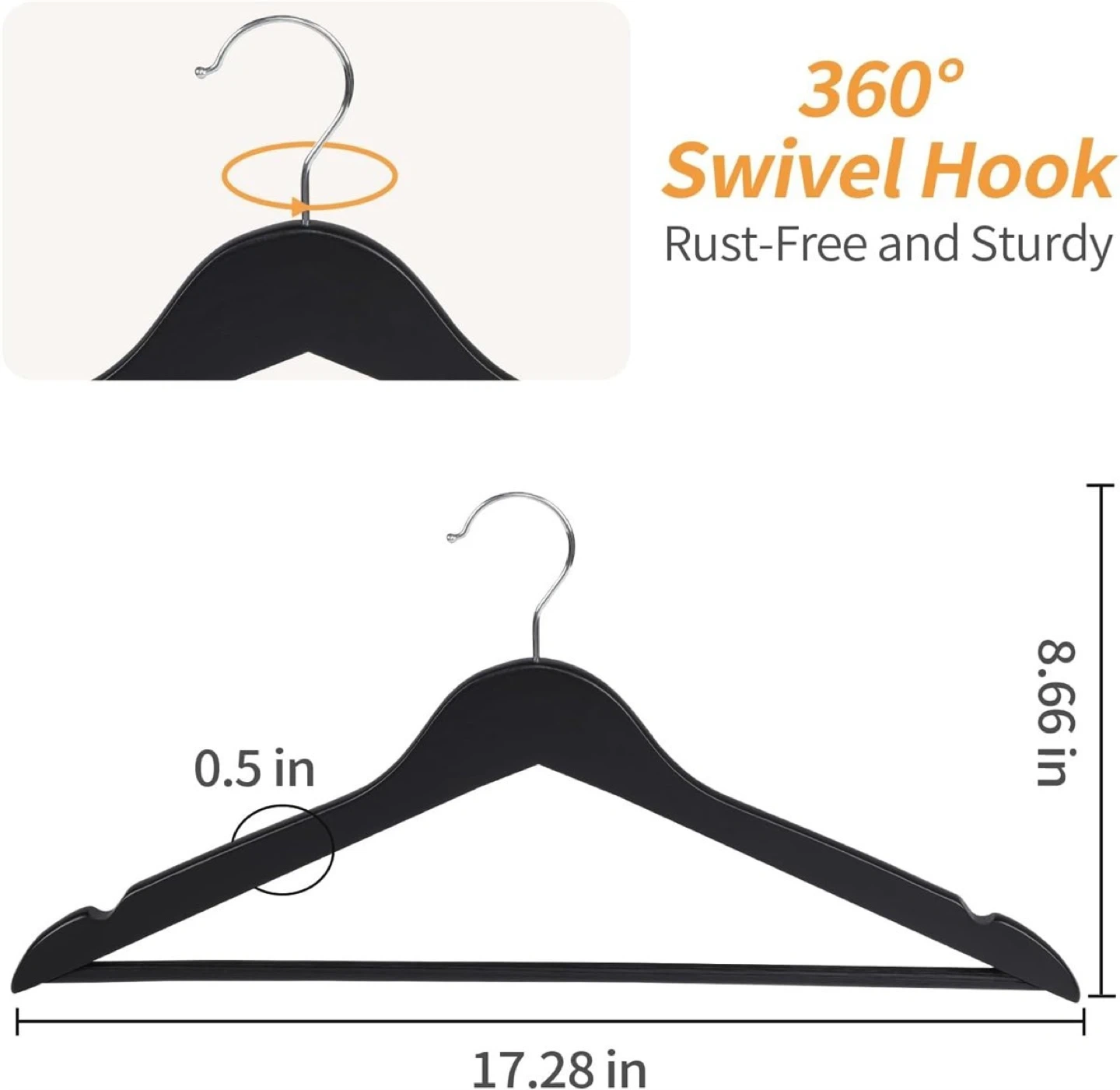 Selling a pack of brand new Amazon Basics clothes hangers! They're sturdy and have a 360° swivel hook that's rust-free. The hangers are 17.28 inches wide and 8.66 inches tall.