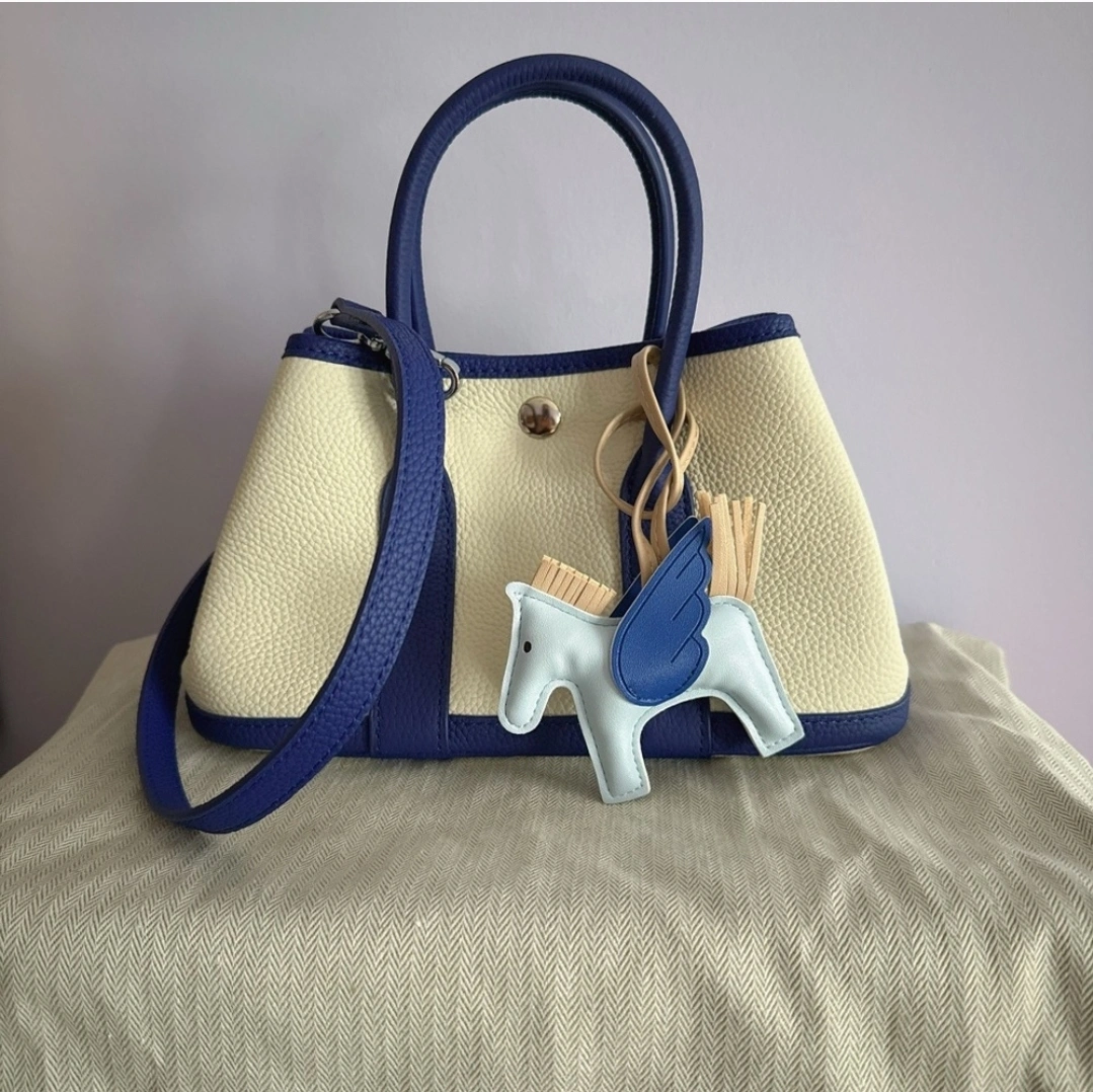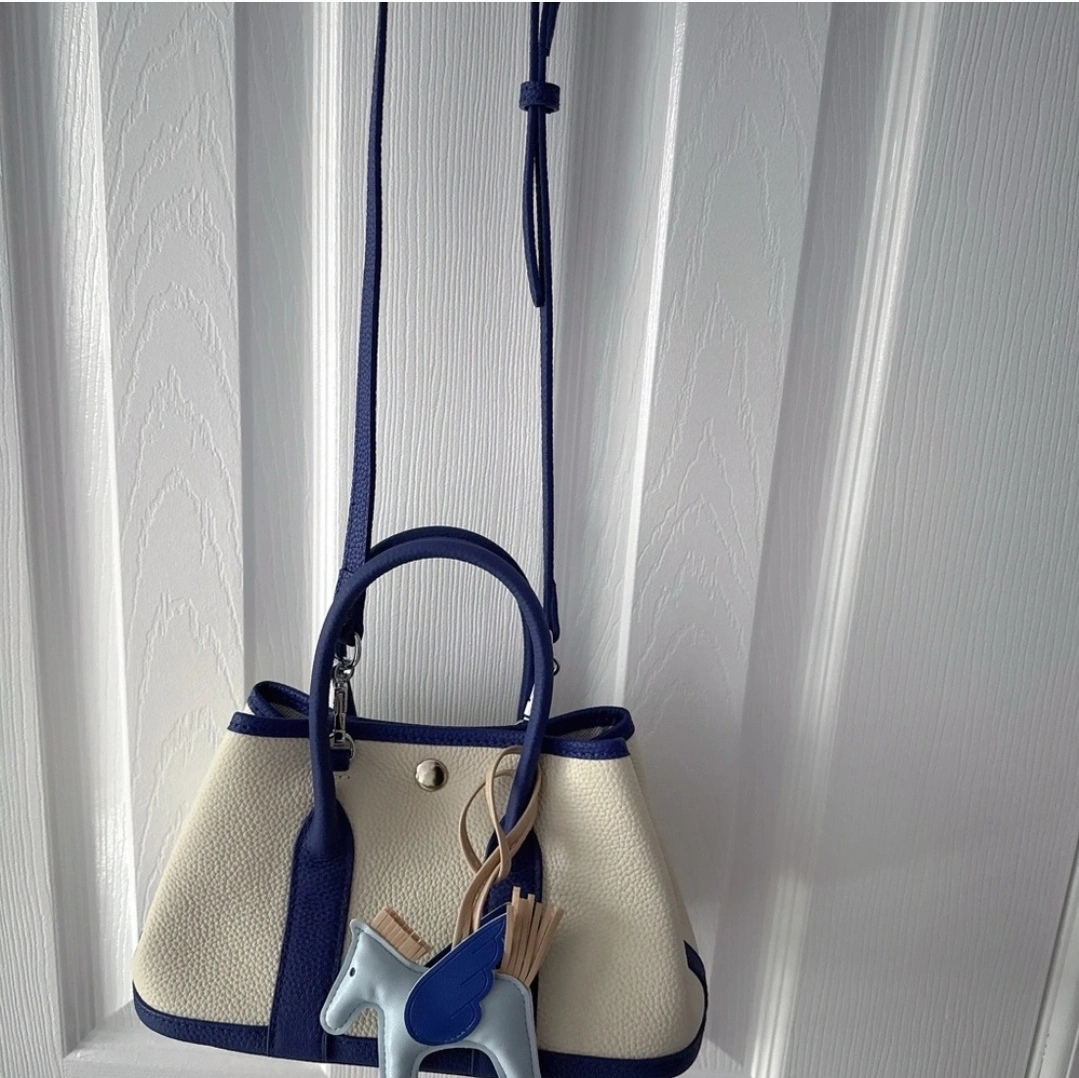 Selling this lovely hand/crossbody bag featuring a sophisticated cream and blue design, in high-quality Togo leather that is used on luxury designer bags. It has a top handle and comes with an adjustable leather crossbody strap, Perfect for adding a touch of whimsy to your outfit. Cute little pegasus charm made of lambskin leather, also comes as a complimentary. Check out my other listings and bundle to save. 👍🏻💸 Pickup only on Brimley and Eglinton Rd E. in Scarborough.