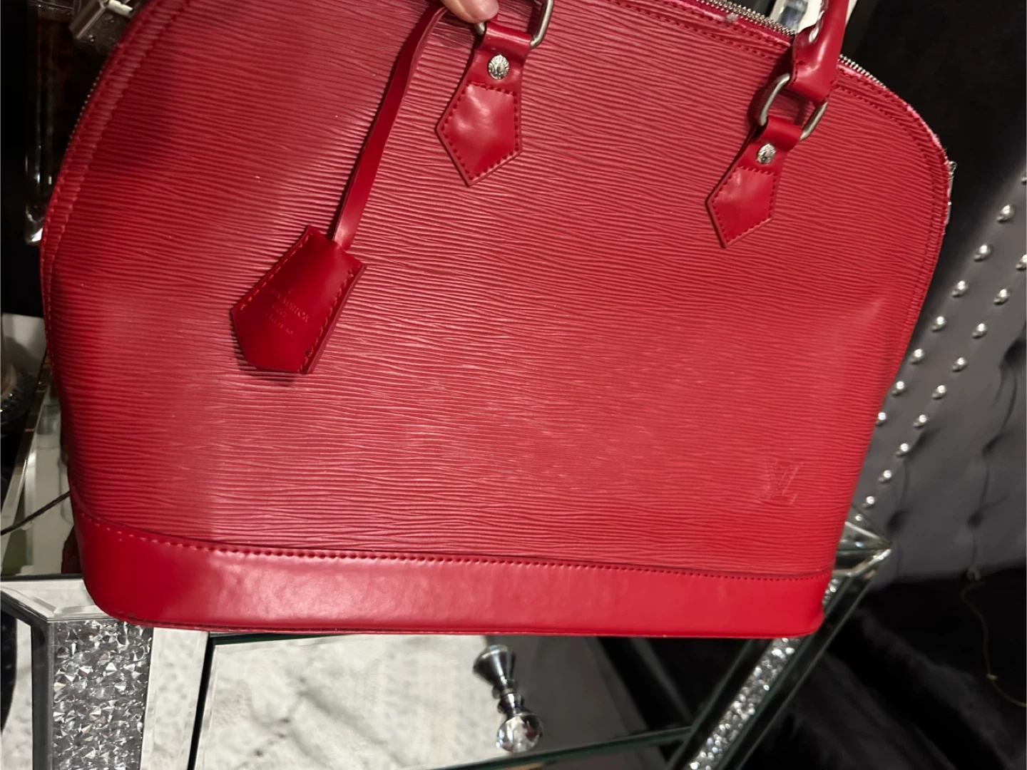 65Selling a beautiful Louis Vuitton Alma PM handbag in red Epi leather! This iconic bag is a timeless classic and a stylish addition to any wardrobe. - Brand: Louis Vuitton - Model: Alma PM - Color: Red