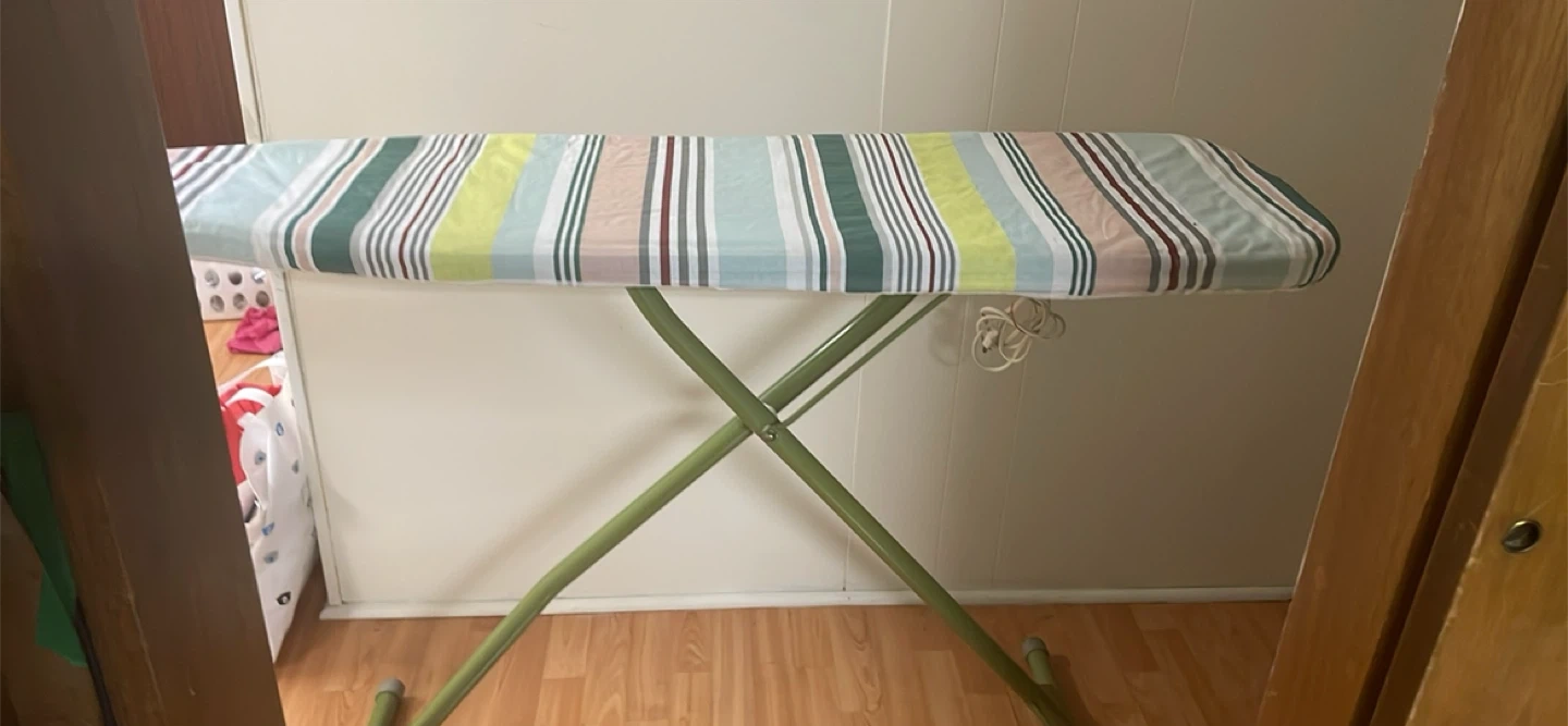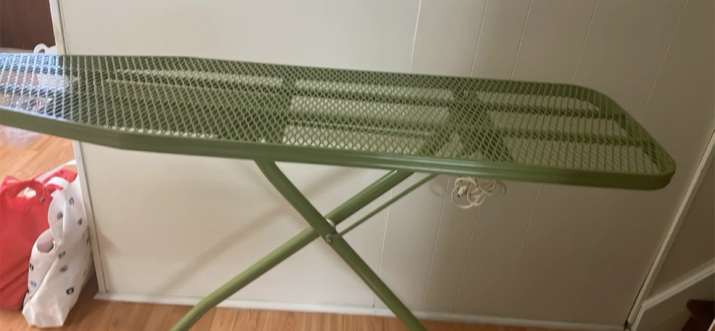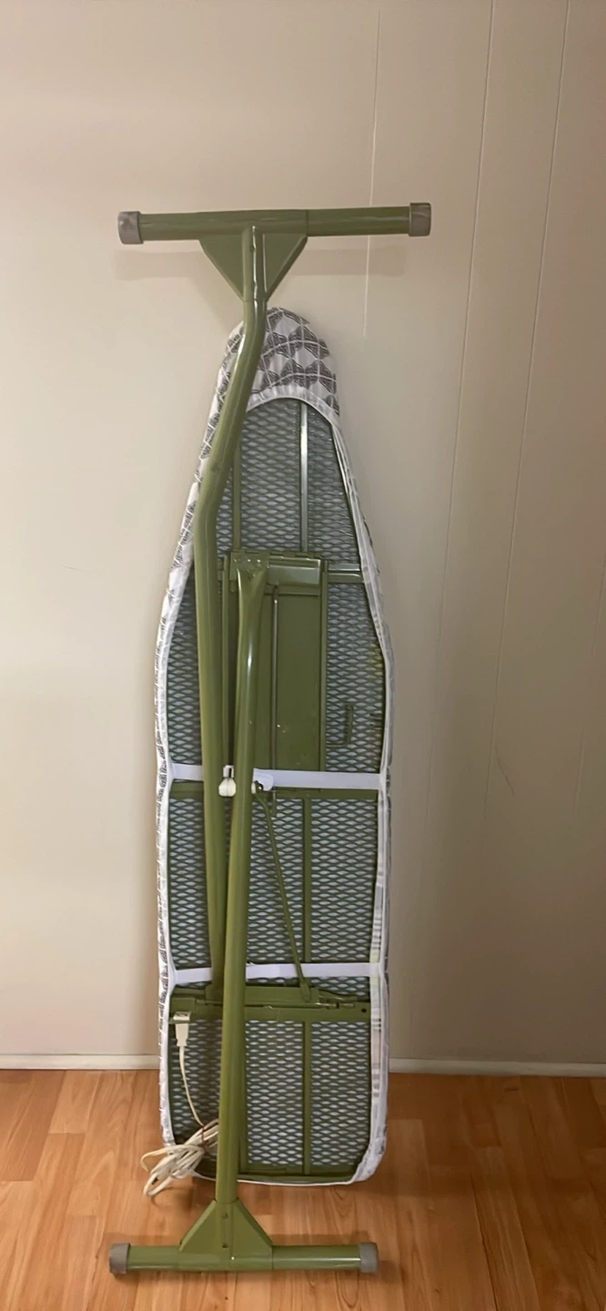 Selling a sturdy green metal ironing board. It's in good condition and ready to help you tackle your ironing pile. The board has a mesh top and a convenient folding design for easy storage. Perfect for any space. Pick up in Scarborough midland and Eglinton