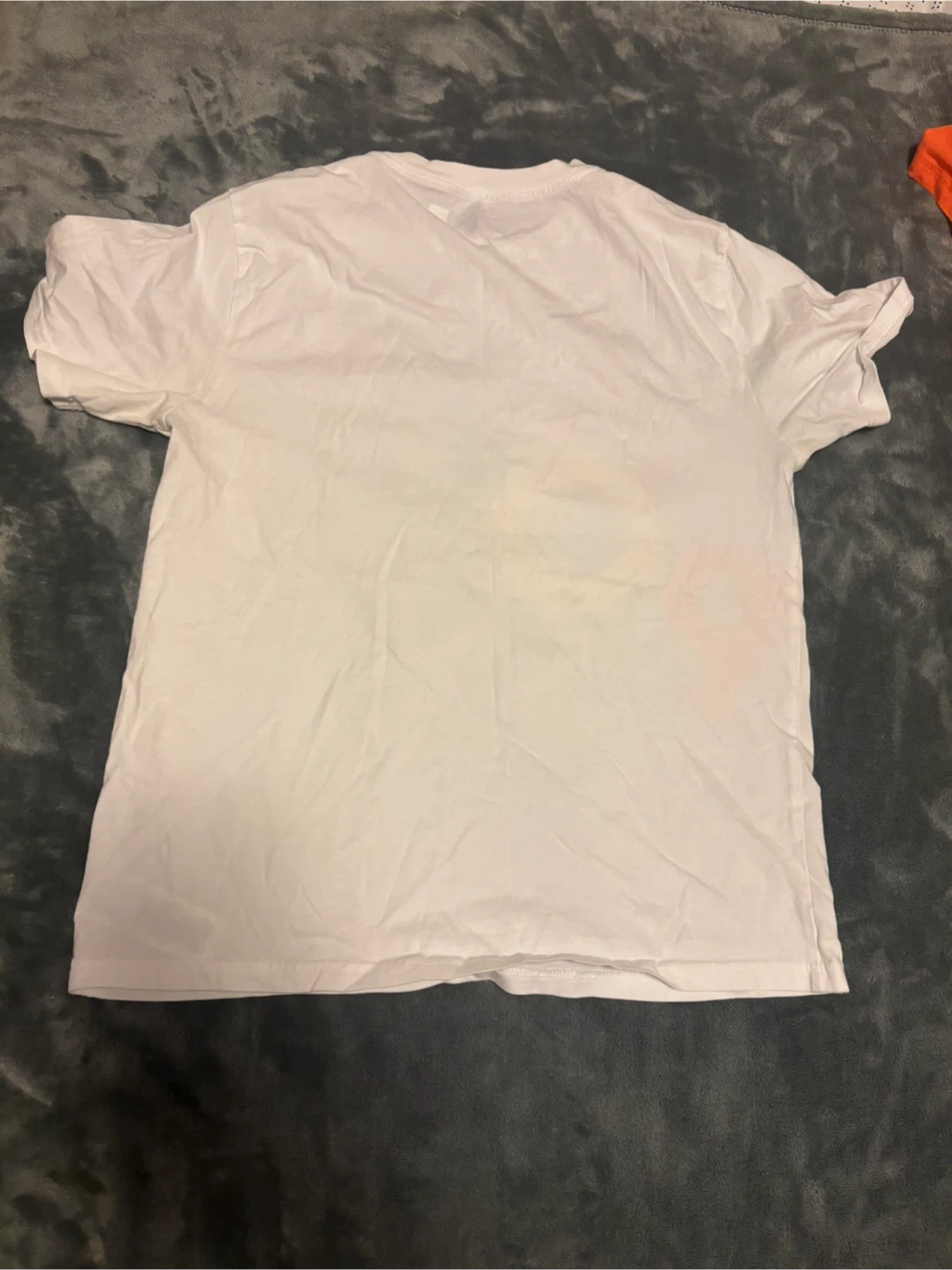 Selling a Polo Ralph Lauren t-shirt in size L (14-16). The shirt is white with a colourful Polo design on the front.