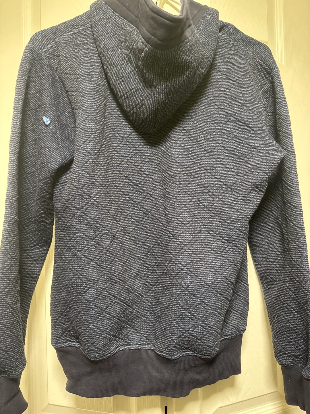 97True Rock men's full zip hoodie in great condition! The hoodie is a navy blue colour with a quilted pattern. It has a hood and two front pockets.