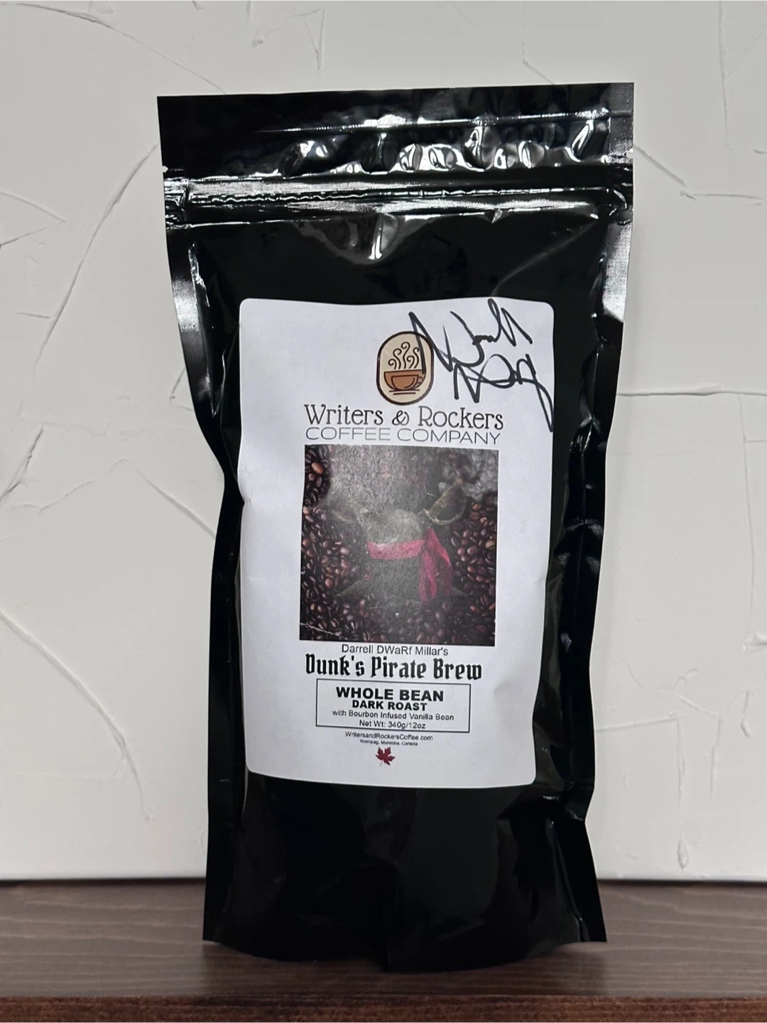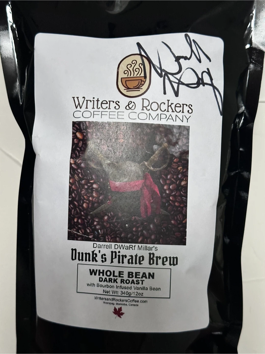 564Selling a bag of Writer's & Rockers Coffee Company's Dunk's Pirate Brew. It's whole bean, dark roast coffee with Bourbon Infused Vanilla Bean. Net weight is 340g/12oz. Perfect for coffee lovers!