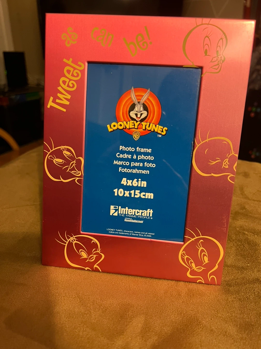 Looking to sell this cute Looney Tunes photo frame featuring Tweety Bird! It's designed for 4x6 inch photos and is in great shape. Perfect for adding a touch of nostalgia to any room!