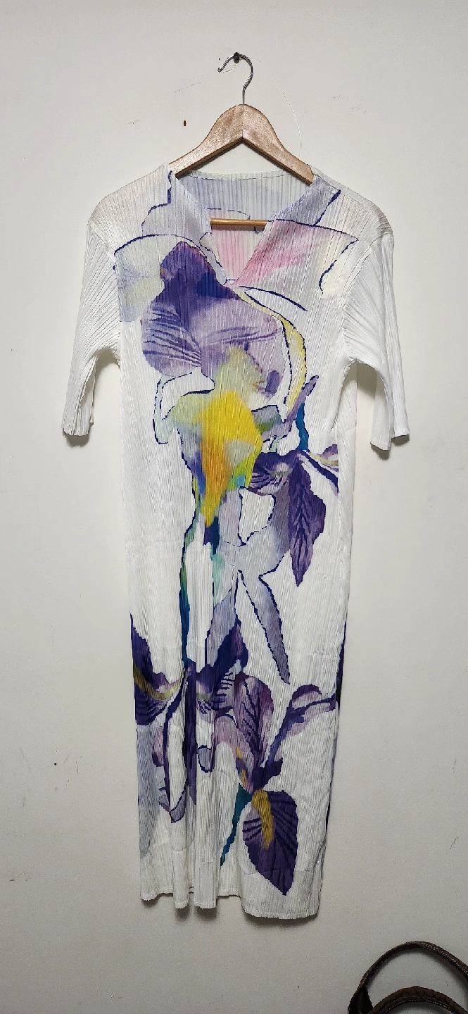 130New Pleats dress with a unique floral print. The pleats give it a nice texture and shape.