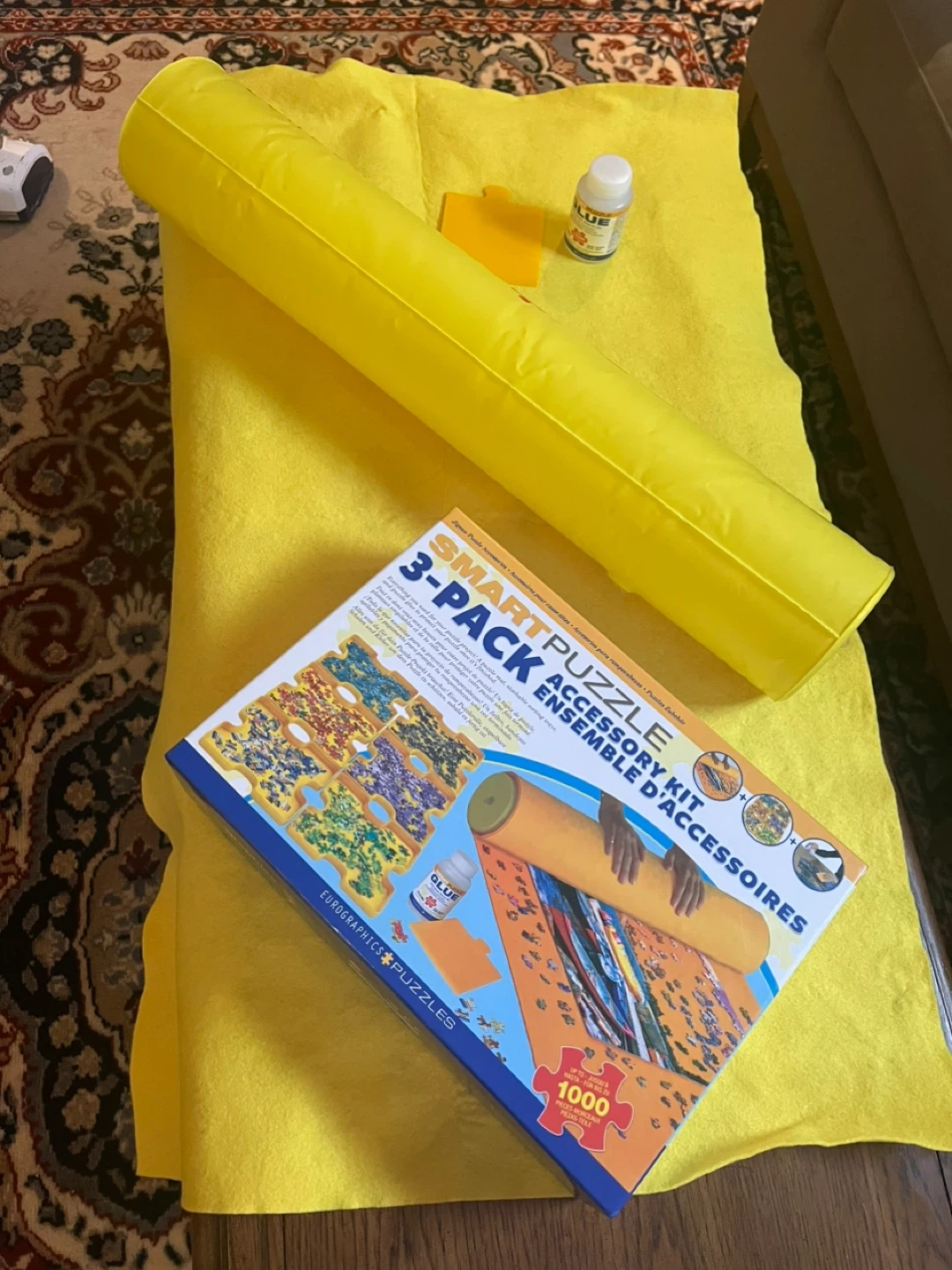 Selling a Eurographics Smart Puzzle Accessory Kit. Includes bottle of transparent puzzle glue, applicator for the glue, felt to roll puzzle in and puzzle roller. The puzzle sorters are *not* included. The felt has a couple of marks on it (noted in last photos) but they won’t impact anything. Perfect for puzzle enthusiasts!
