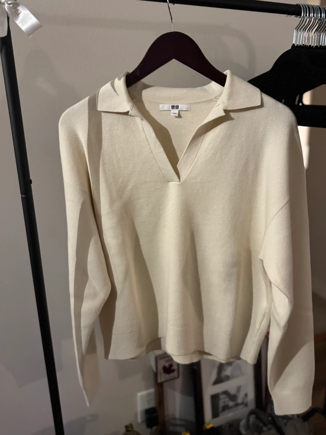 Selling brand new unworn Uniqlo knit polo shirt in a cream colour. (Tried on only at home)